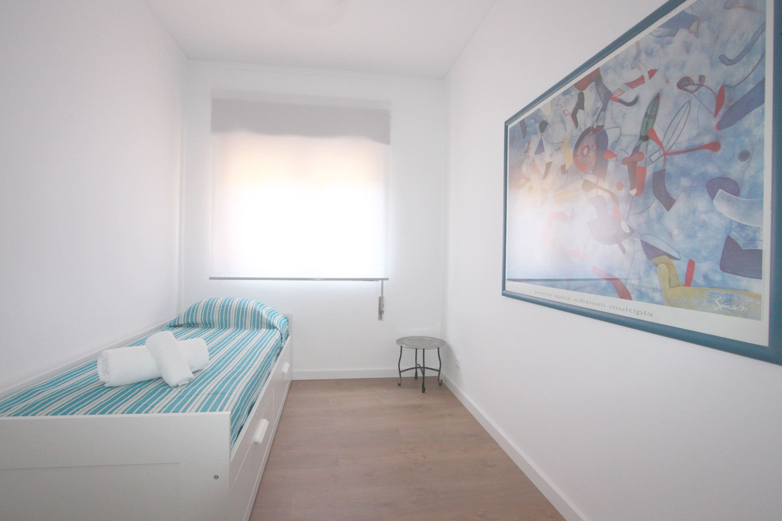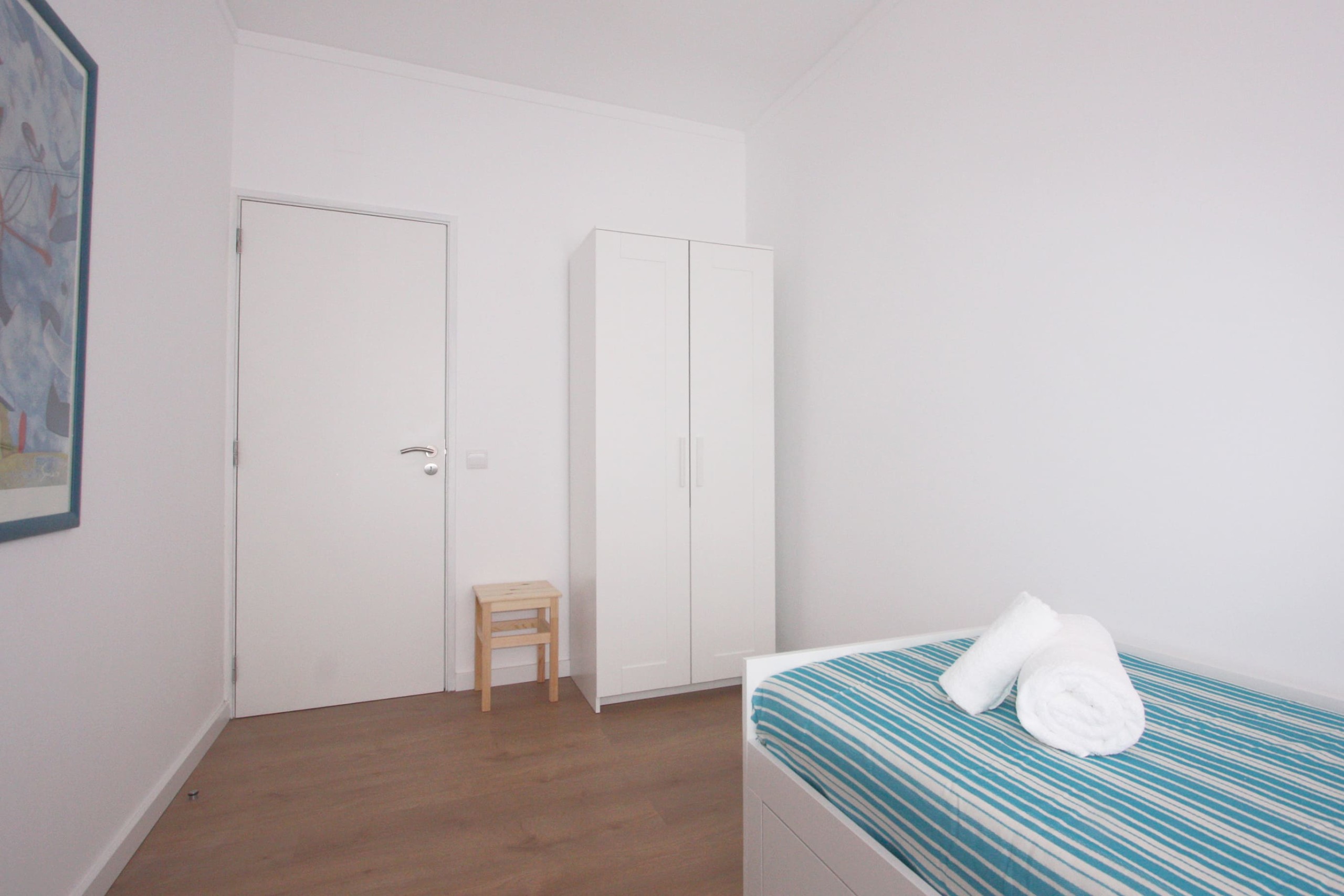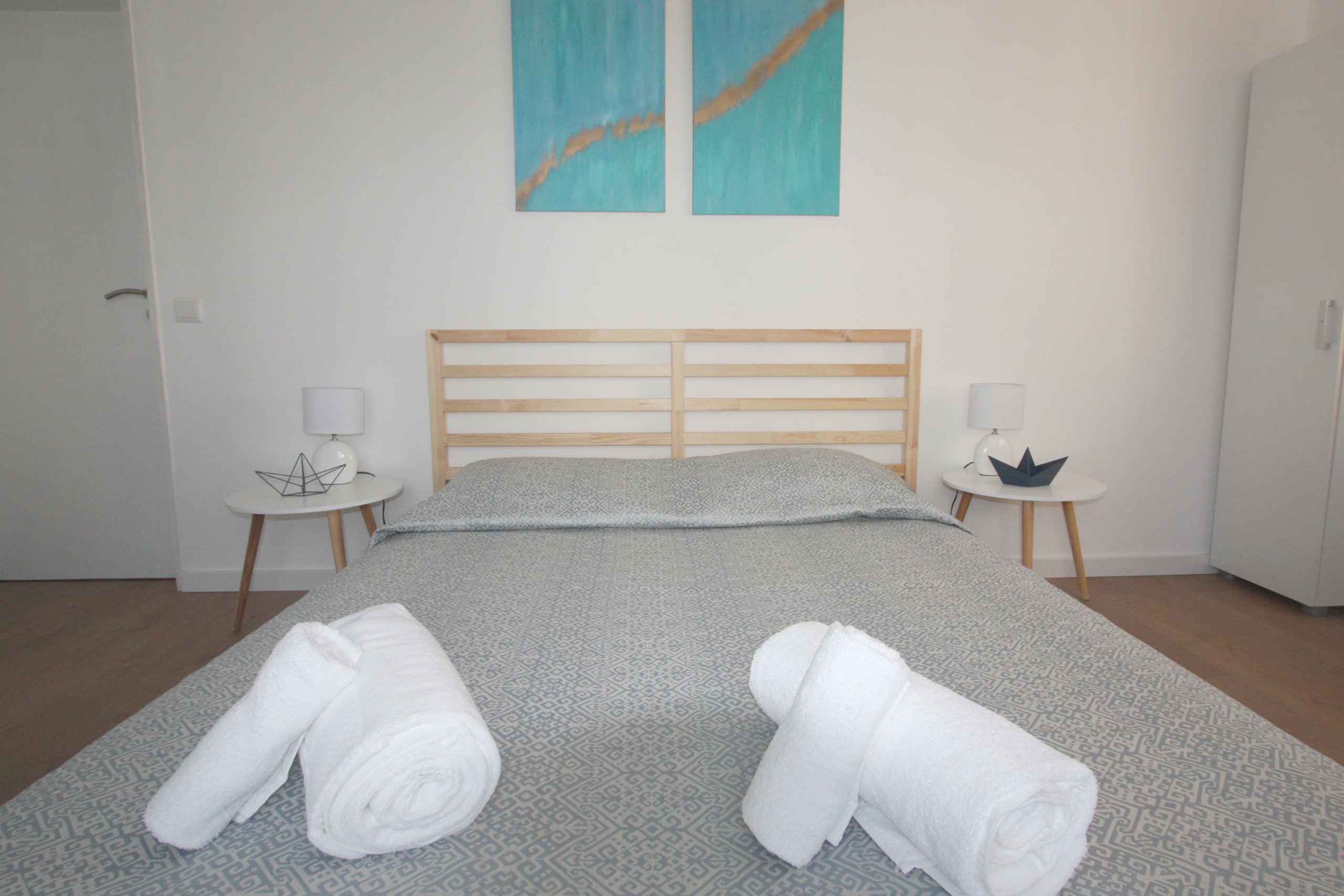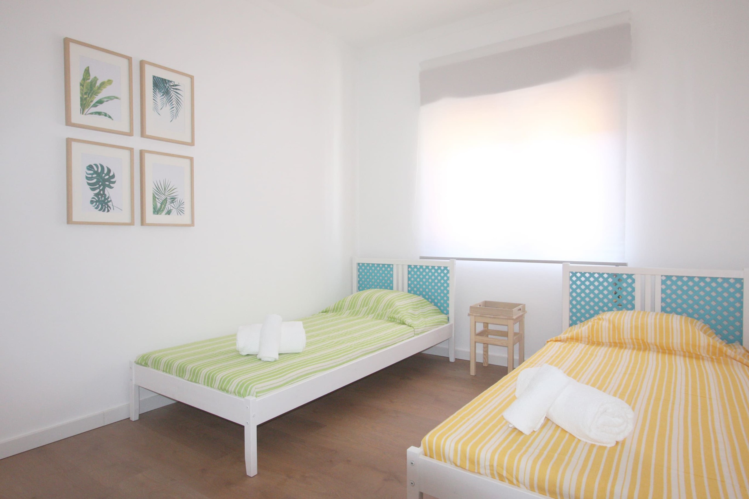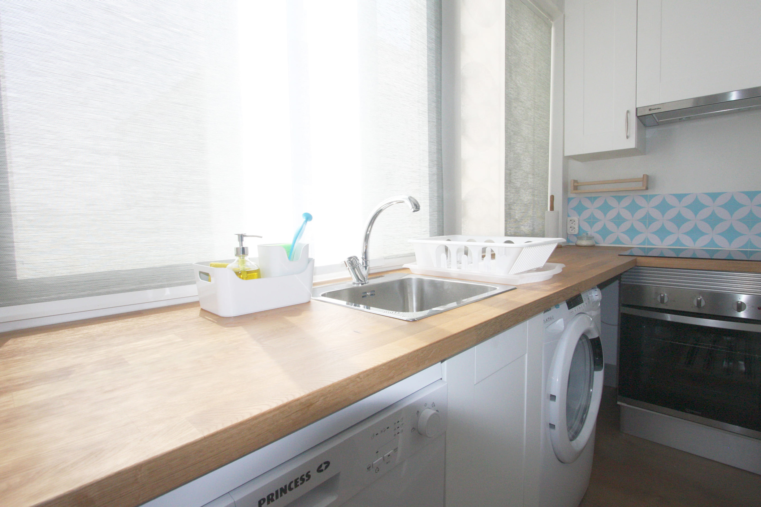 With large windows that let in natural light, the apartment is super bright and comfortable. It has three bedrooms, a living room and an open space kitchen with a dining area, a bathroom and a small balcony. It is equipped and furnished with all amenities – dishwasher and washing machine, TV in the living room and in one of the bedrooms and WiFi.