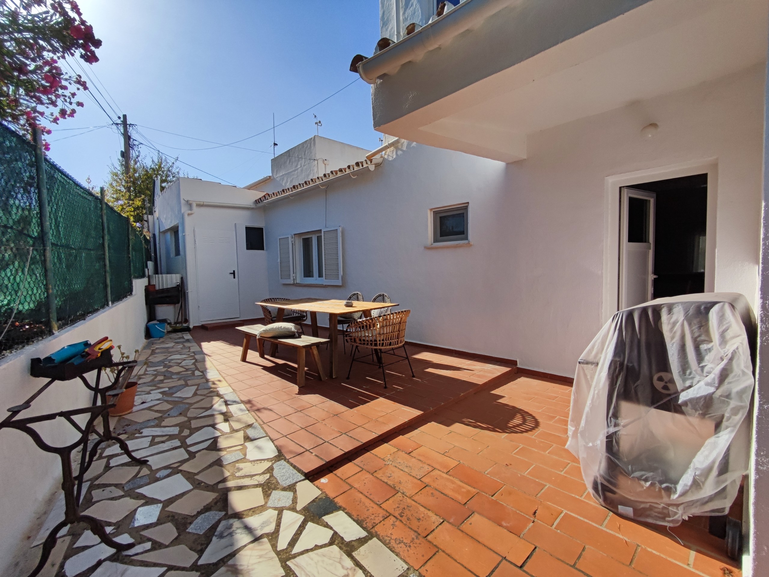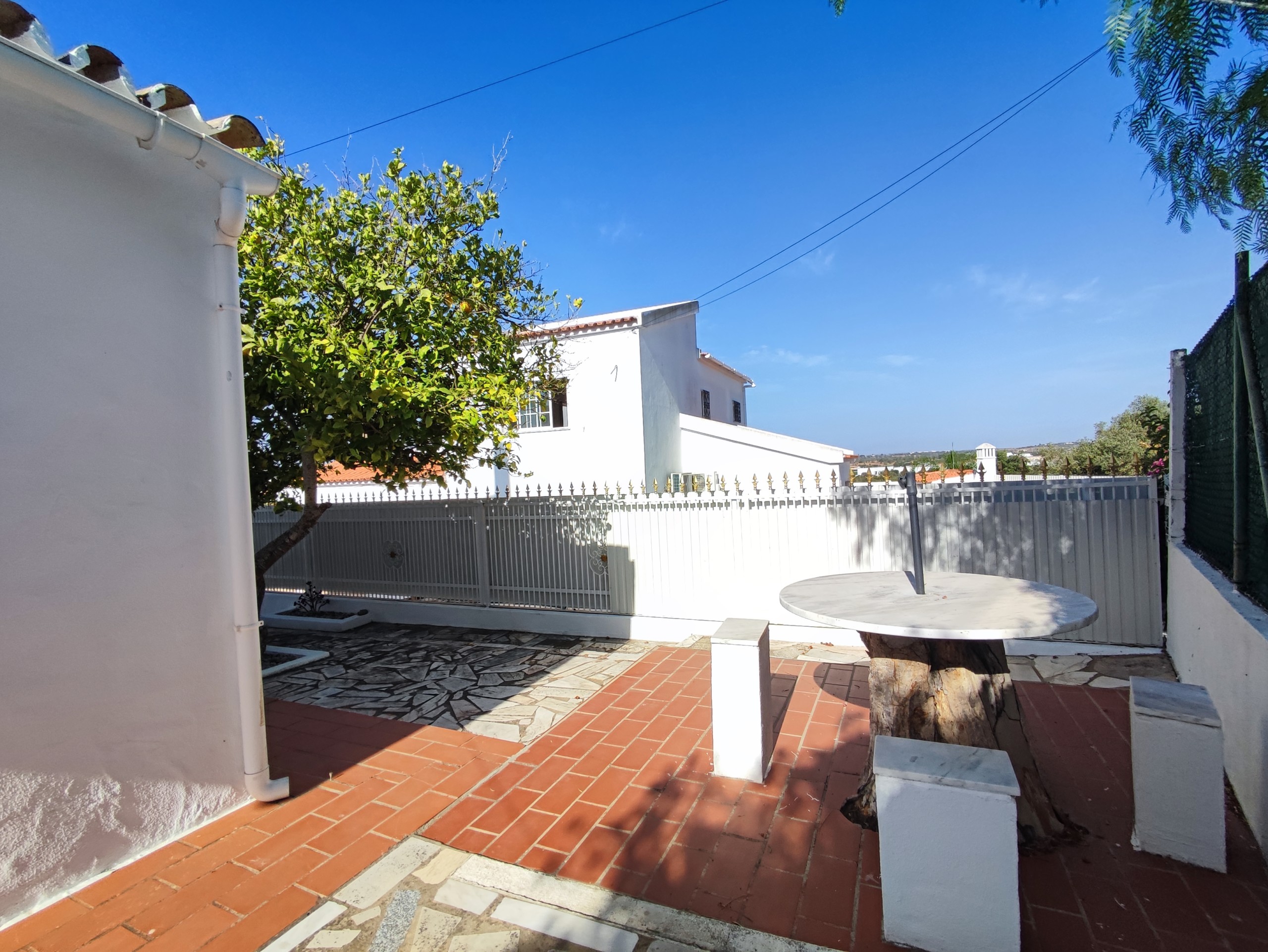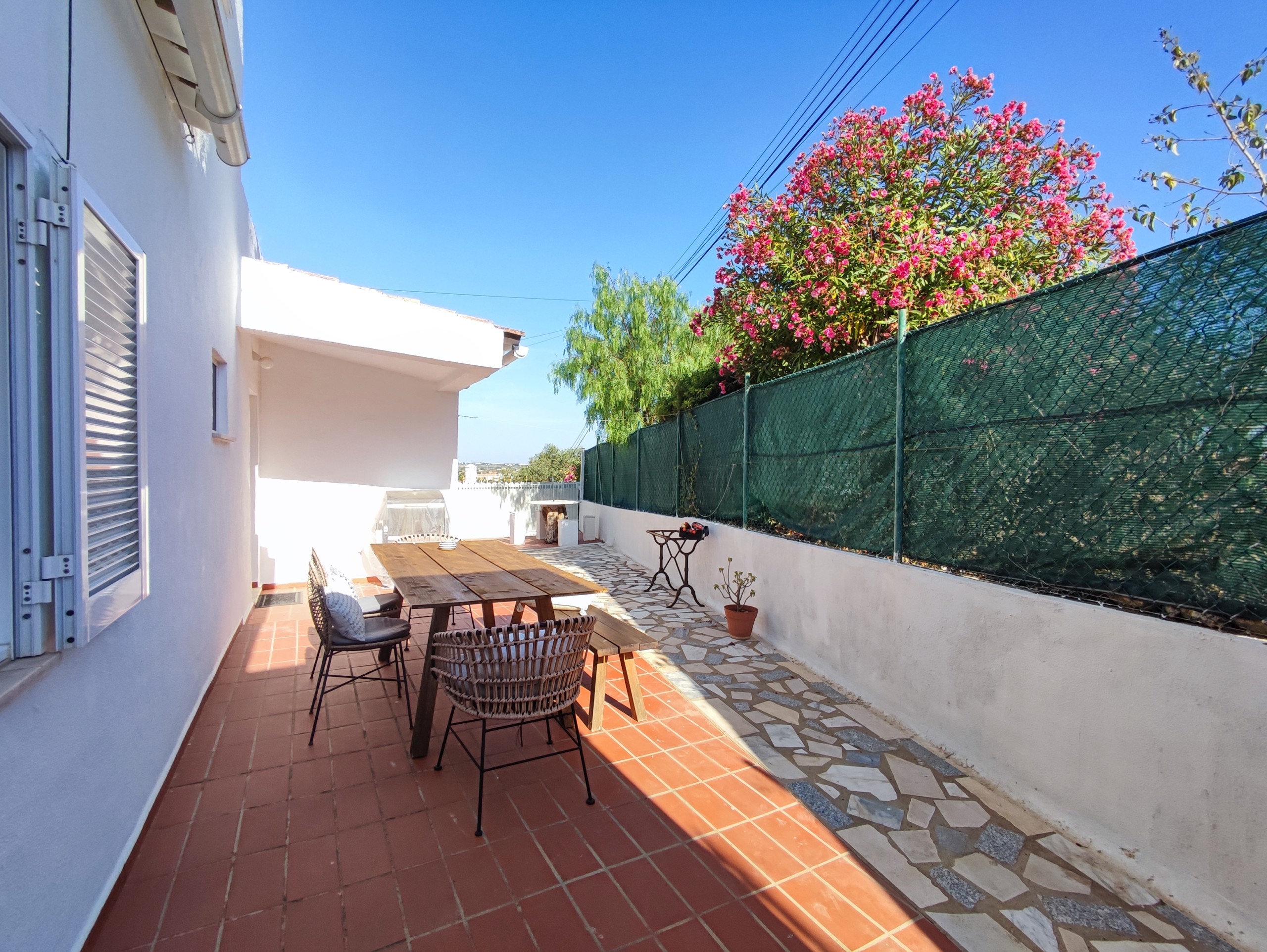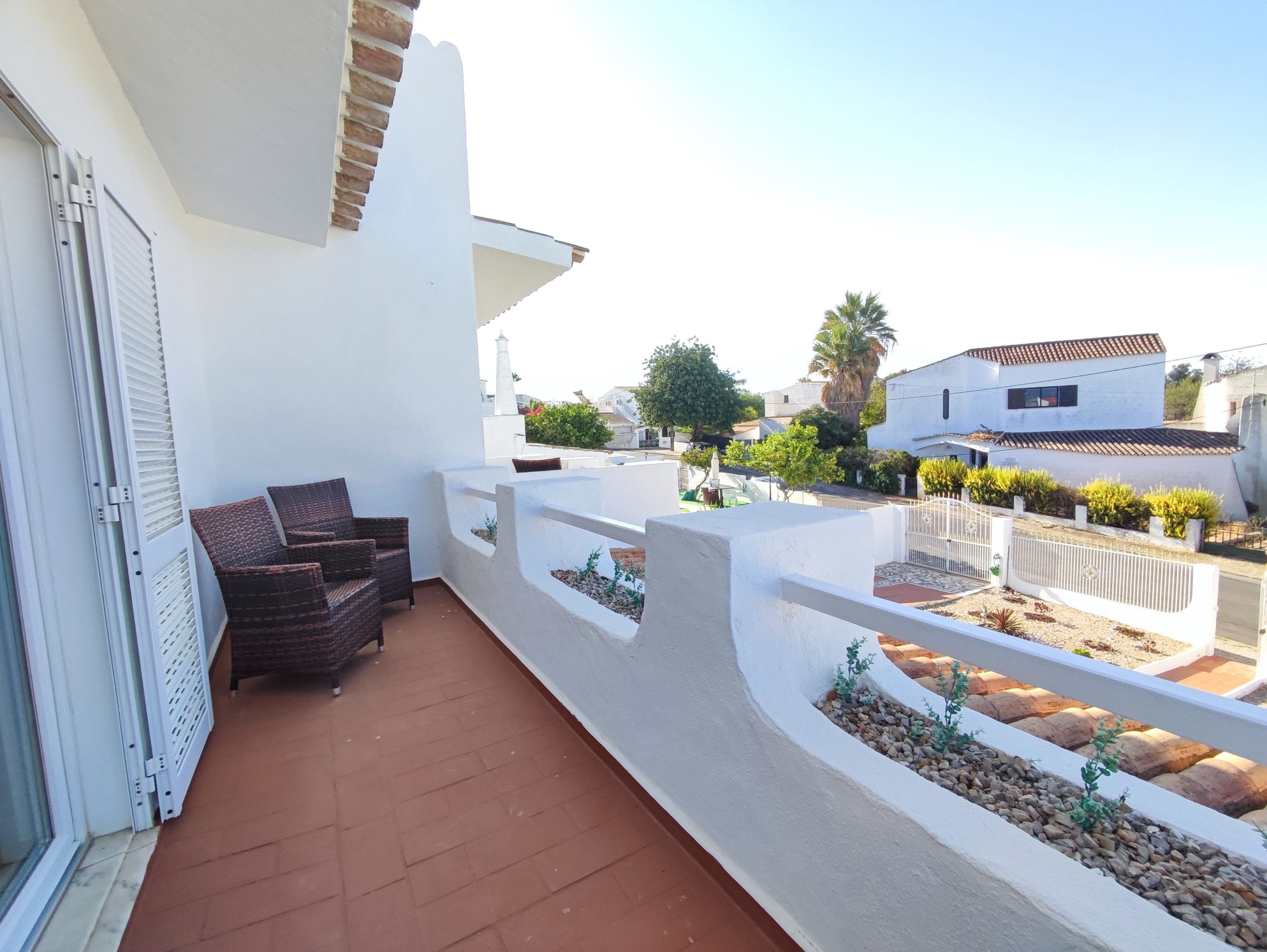 This fully furnished 3 bedroom villa in Ferreiras comes fully equipped. On the entrance floor you can find a living room and dining room, a fully equipped kitchen, with a washing machine and dishwasher. It also has a bedroom with air conditioning, built-in wardrobe, bathroom and pantry. It has a door in the kitchen that gives access to a large terrace with a brand new barbecue, table to enjoy the outdoor space which has orange and lemon trees. Upstairs there are two more bedrooms, both with balconies, air conditioning and fitted wardrobes and a bathroom. Going up a few more steps, you will also find a terrace where you can enjoy some beautiful views. This villa is located in a very quiet area in Ferreiras while also being close to supermarkets, cafes and other amenities.