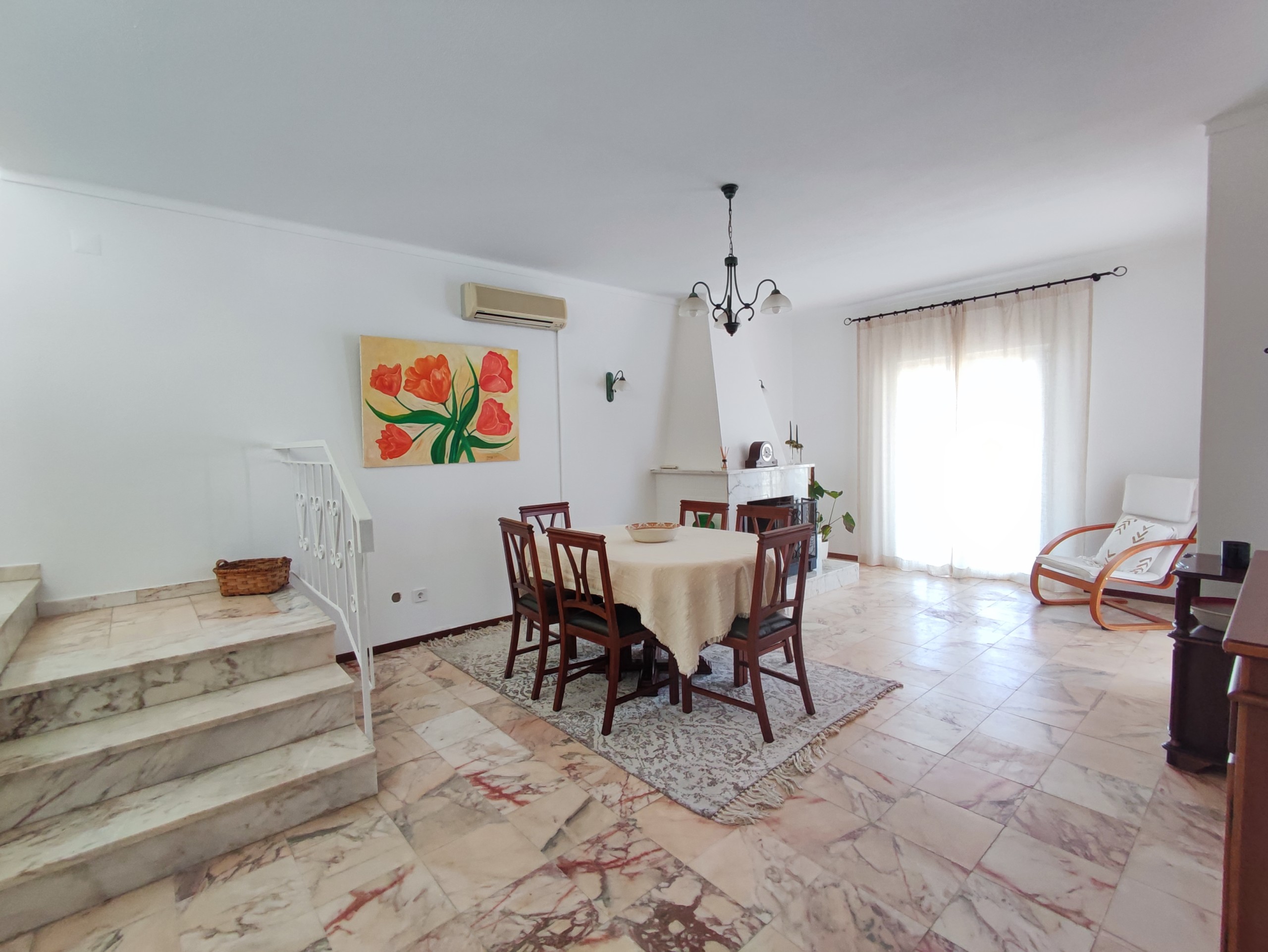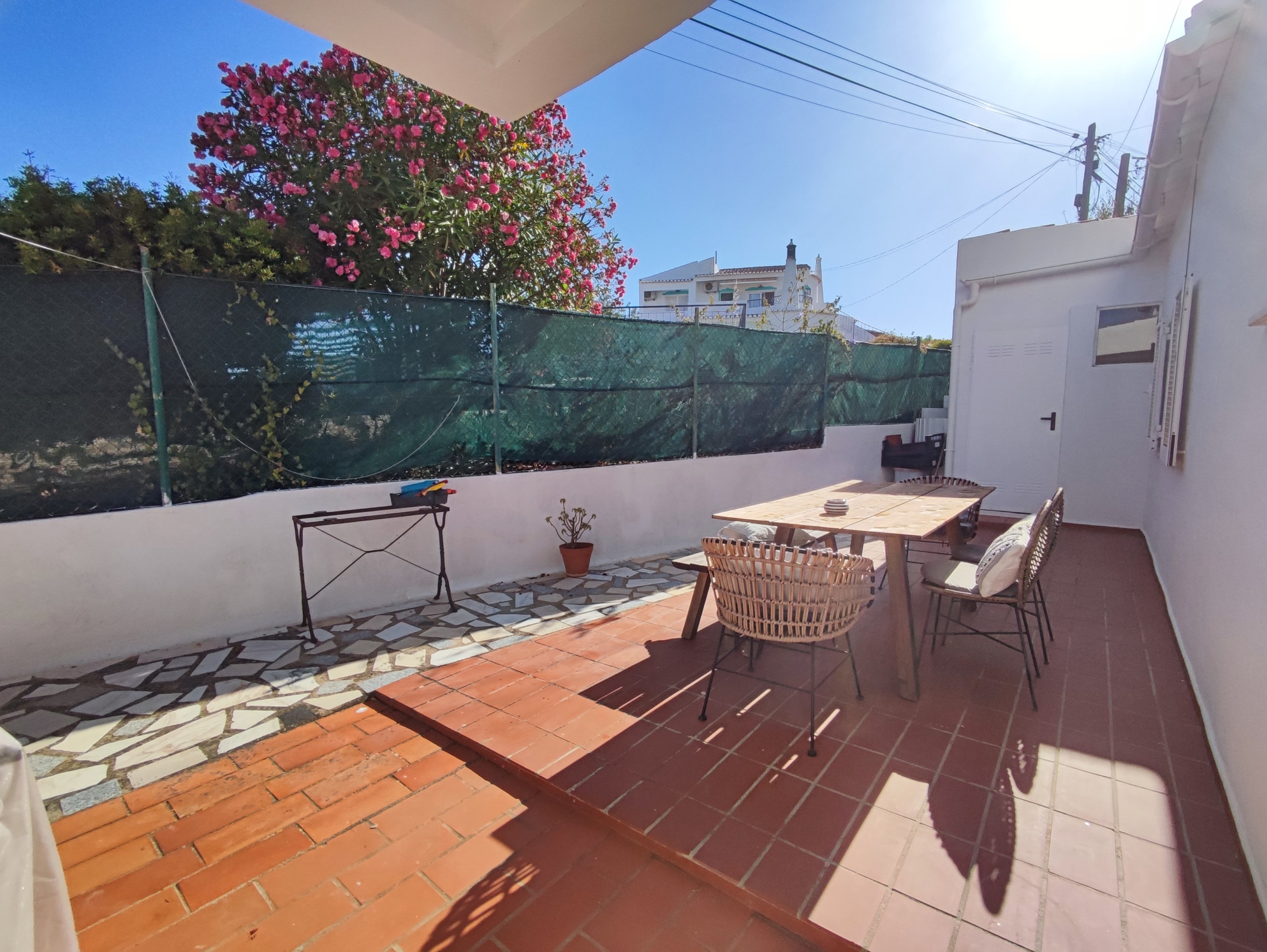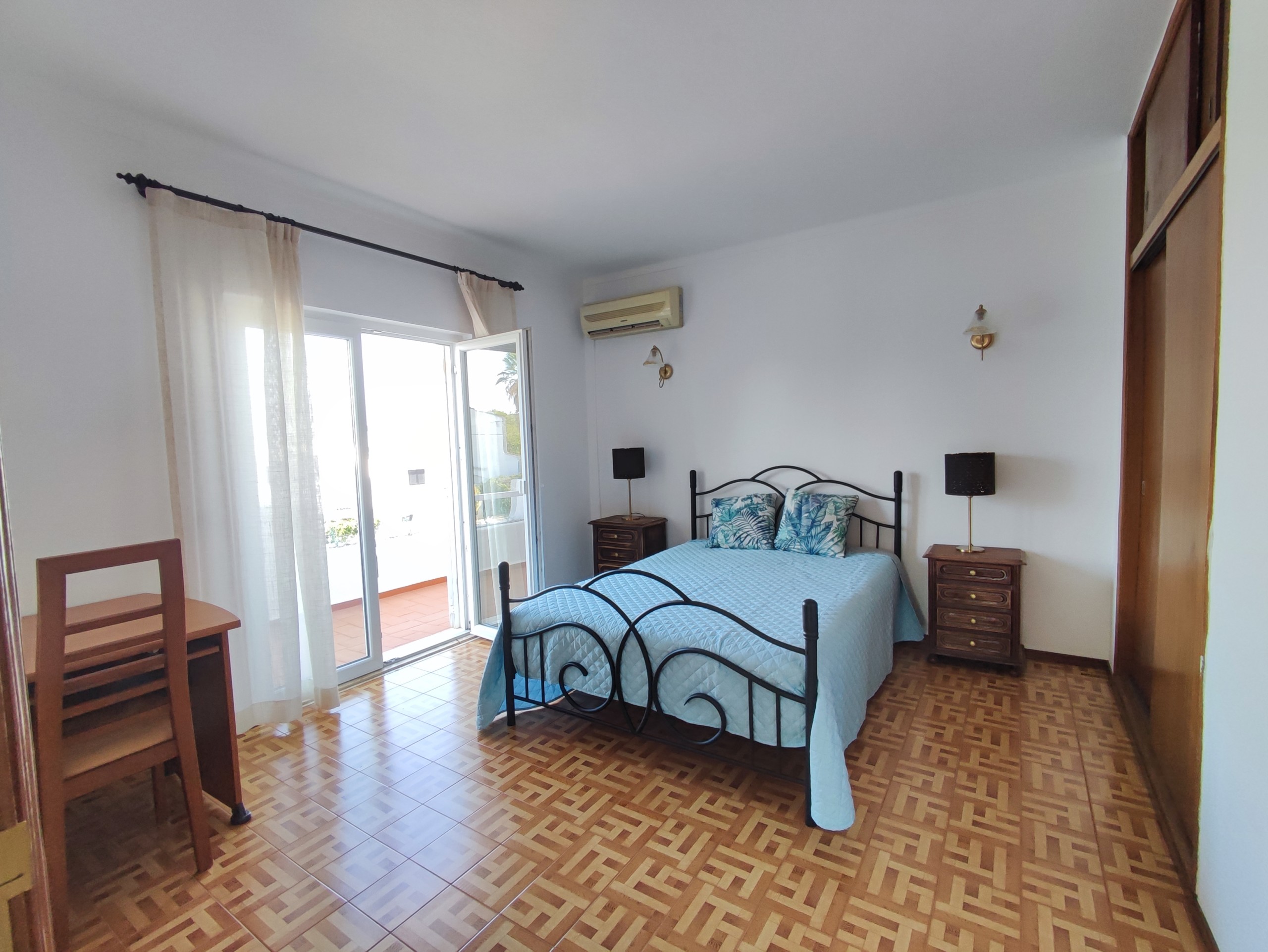 This fully furnished 3 bedroom villa in Ferreiras comes fully equipped. On the entrance floor you can find a living room and dining room, a fully equipped kitchen, with a washing machine and dishwasher. It also has a bedroom with air conditioning, built-in wardrobe, bathroom and pantry. It has a door in the kitchen that gives access to a large terrace with a brand new barbecue, table to enjoy the outdoor space which has orange and lemon trees. Upstairs there are two more bedrooms, both with balconies, air conditioning and fitted wardrobes and a bathroom. Going up a few more steps, you will also find a terrace where you can enjoy some beautiful views. This villa is located in a very quiet area in Ferreiras while also being close to supermarkets, cafes and other amenities.