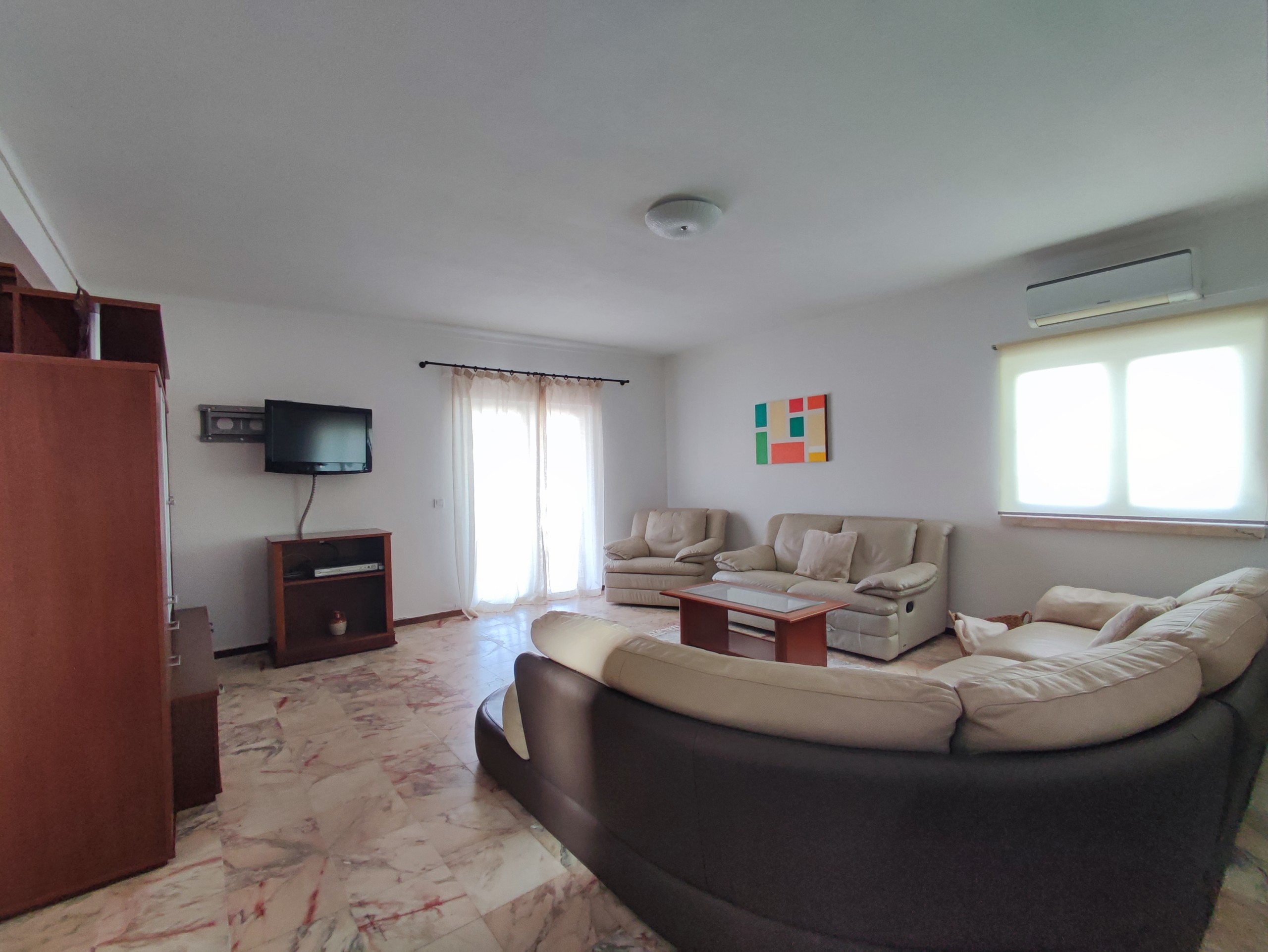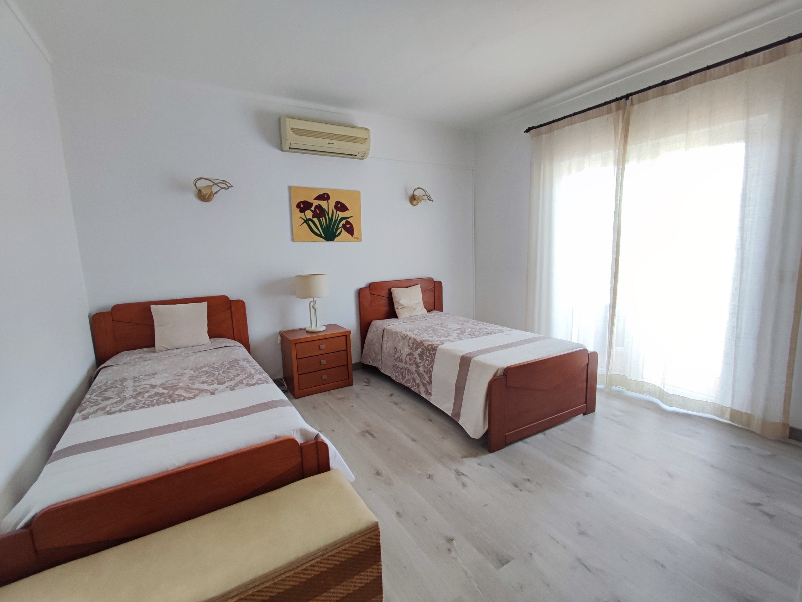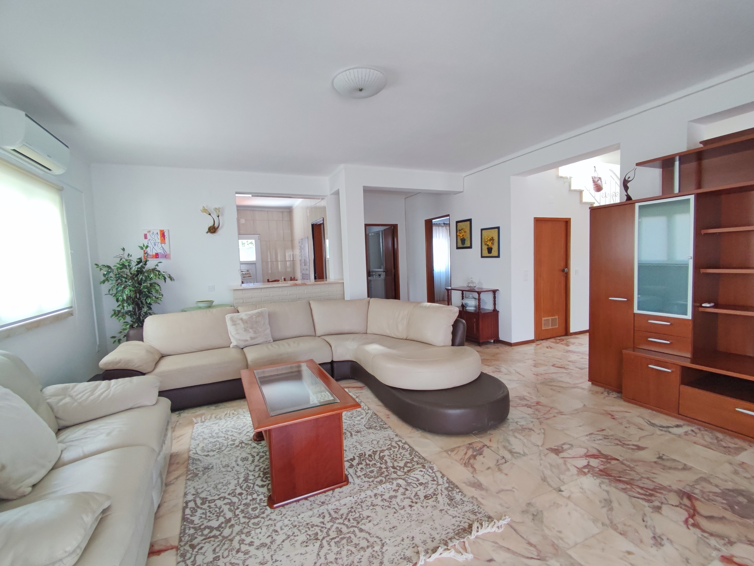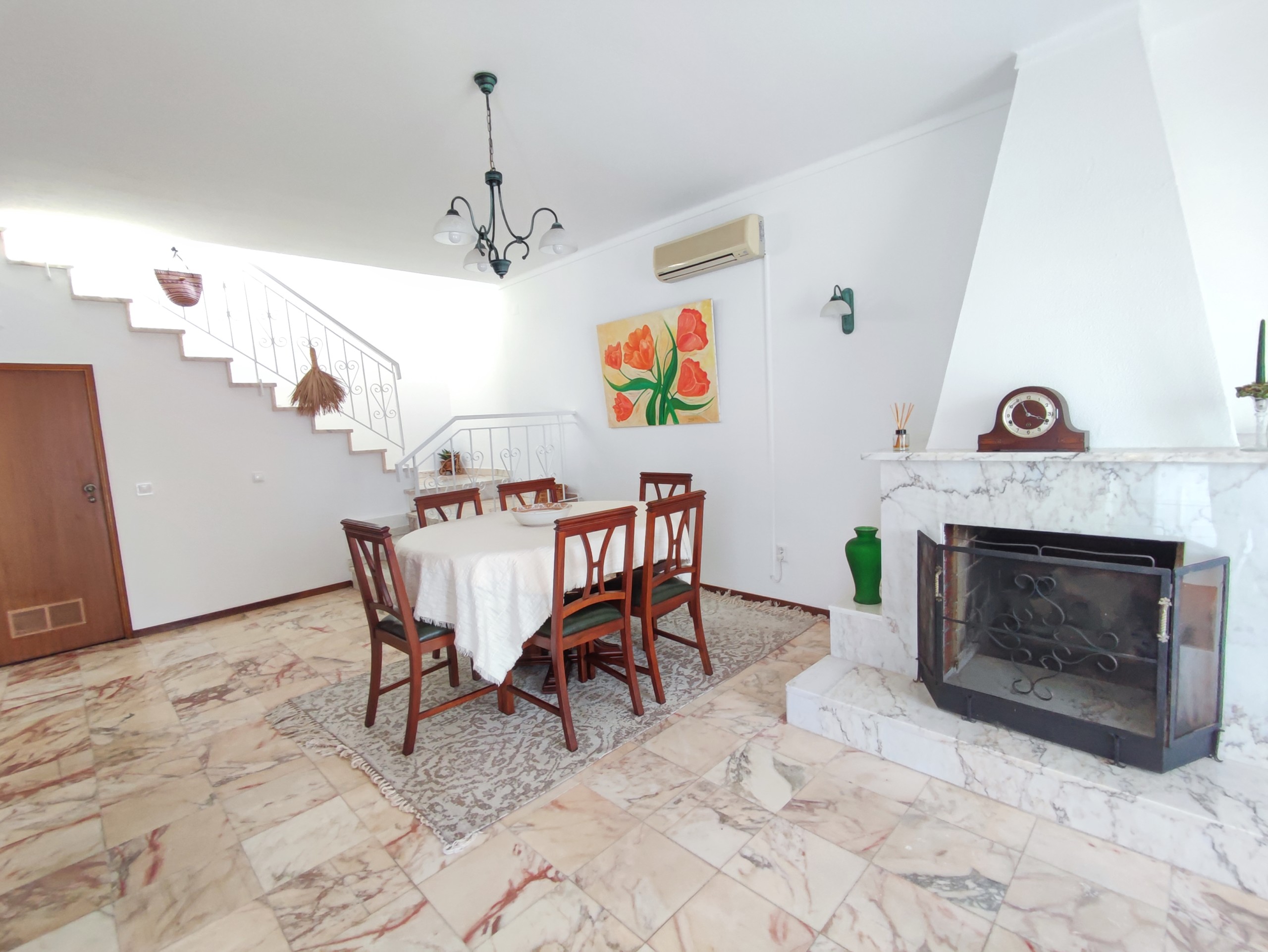 This fully furnished 3 bedroom villa in Ferreiras comes fully equipped. On the entrance floor you can find a living room and dining room, a fully equipped kitchen, with a washing machine and dishwasher. It also has a bedroom with air conditioning, built-in wardrobe, bathroom and pantry. It has a door in the kitchen that gives access to a large terrace with a brand new barbecue, table to enjoy the outdoor space which has orange and lemon trees. Upstairs there are two more bedrooms, both with balconies, air conditioning and fitted wardrobes and a bathroom. Going up a few more steps, you will also find a terrace where you can enjoy some beautiful views. This villa is located in a very quiet area in Ferreiras while also being close to supermarkets, cafes and other amenities.