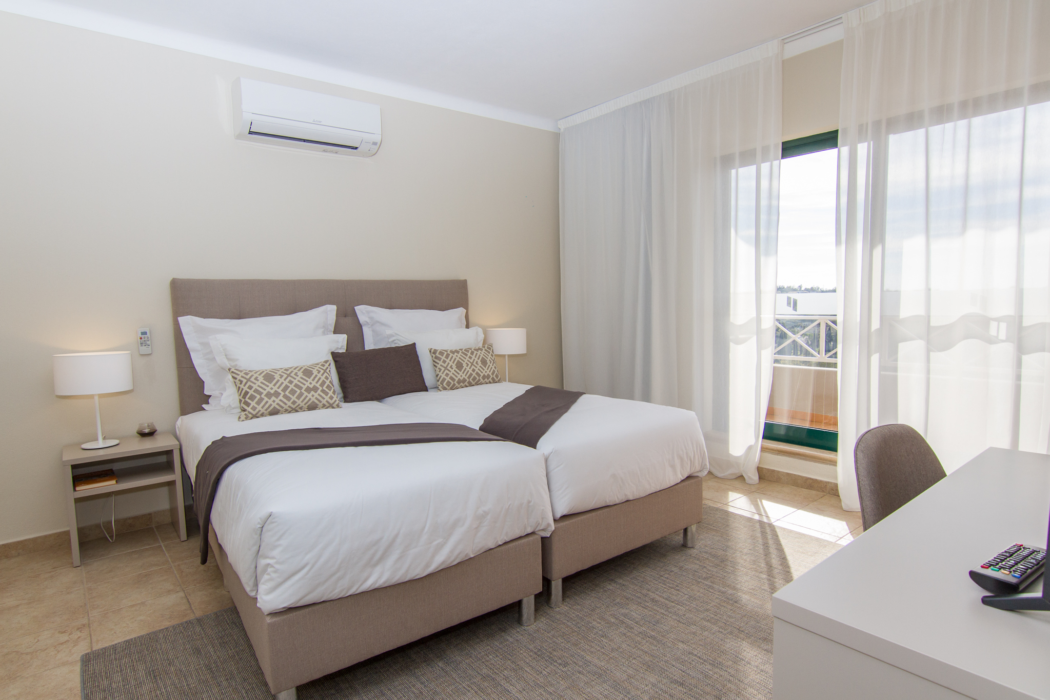 This Modern 1 bedroom apartment in Carvoeiro with spacious living areas, one bedroom, one bathroom (equipped with a hairdryer) and a fully equipped kitchen is located in a prestige resort. All the rooms can be heated. Contained within the room is also a telephone, a safe and access to satellite TV. A communal swimming pool is also available for use. You may make use of the spacious terrace which has great views to the well maintained gardens. There are several amenities on site to help you with whatever you may need such as a supermarket, a doctor and a library.