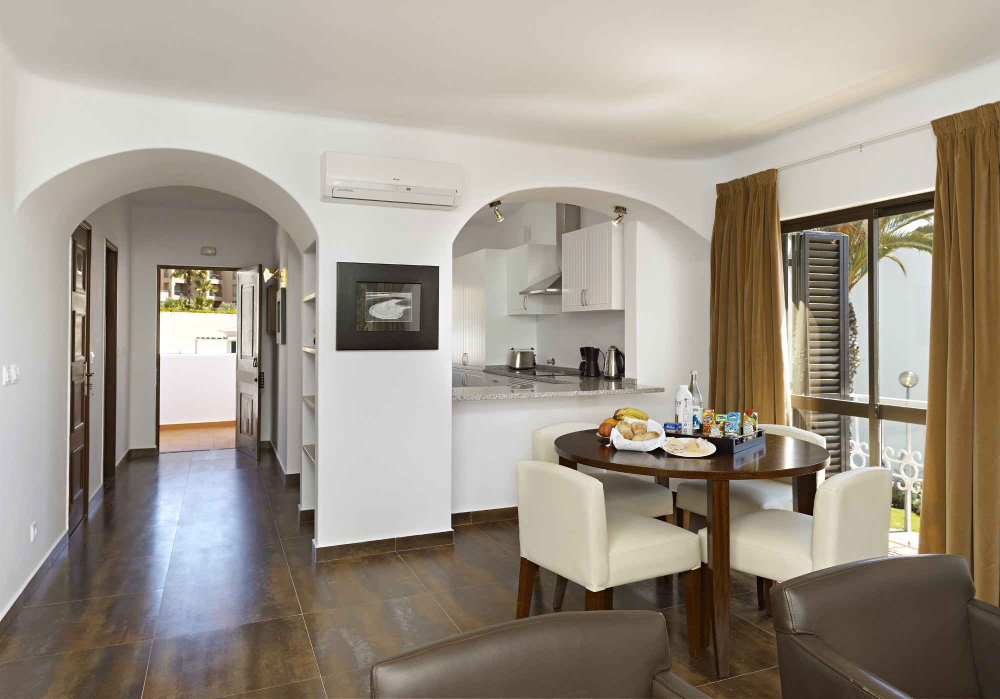 This modern 2 bedroom apartment in Albufeira is located in the West of Albufeira, sitting in the neighbourhood of São Rafael, just a five-minute walk from one of the most beautiful beaches in the Algarve, São Rafael beach. Easily accessible, it’s a 15-minute-drive away from the Albufeira city center and Algarve motorway A22, and 40 minutes away Faro International Airport. It has a balcony and comes fully equipped. Common space with living area, dining area and kitchen. Public parking near the apartments and shared swimming pools.