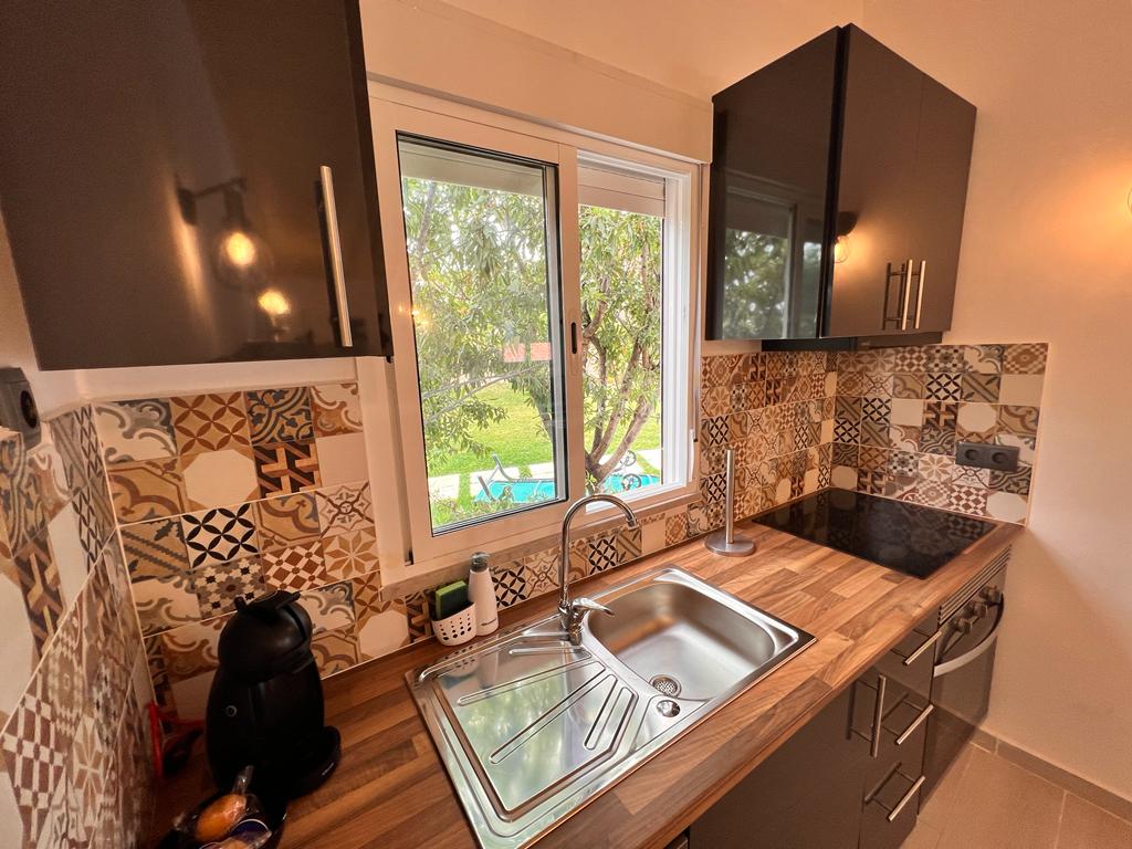 This refurbished 1 bedroom apartment in Carvoeiro is fully equipped. It comprises of 2 bathrooms, one of them being a full bathroom. There is parking within the property, access to WiFi and air conditioning throughout. There is access to a heated salt water swimming pool, a sauna, 2 jacuzzis and a spa space to relax, as well as a gym. It is located merely 1 km away from the center of Carvoeiro and about 2 km from Gramacho golf.