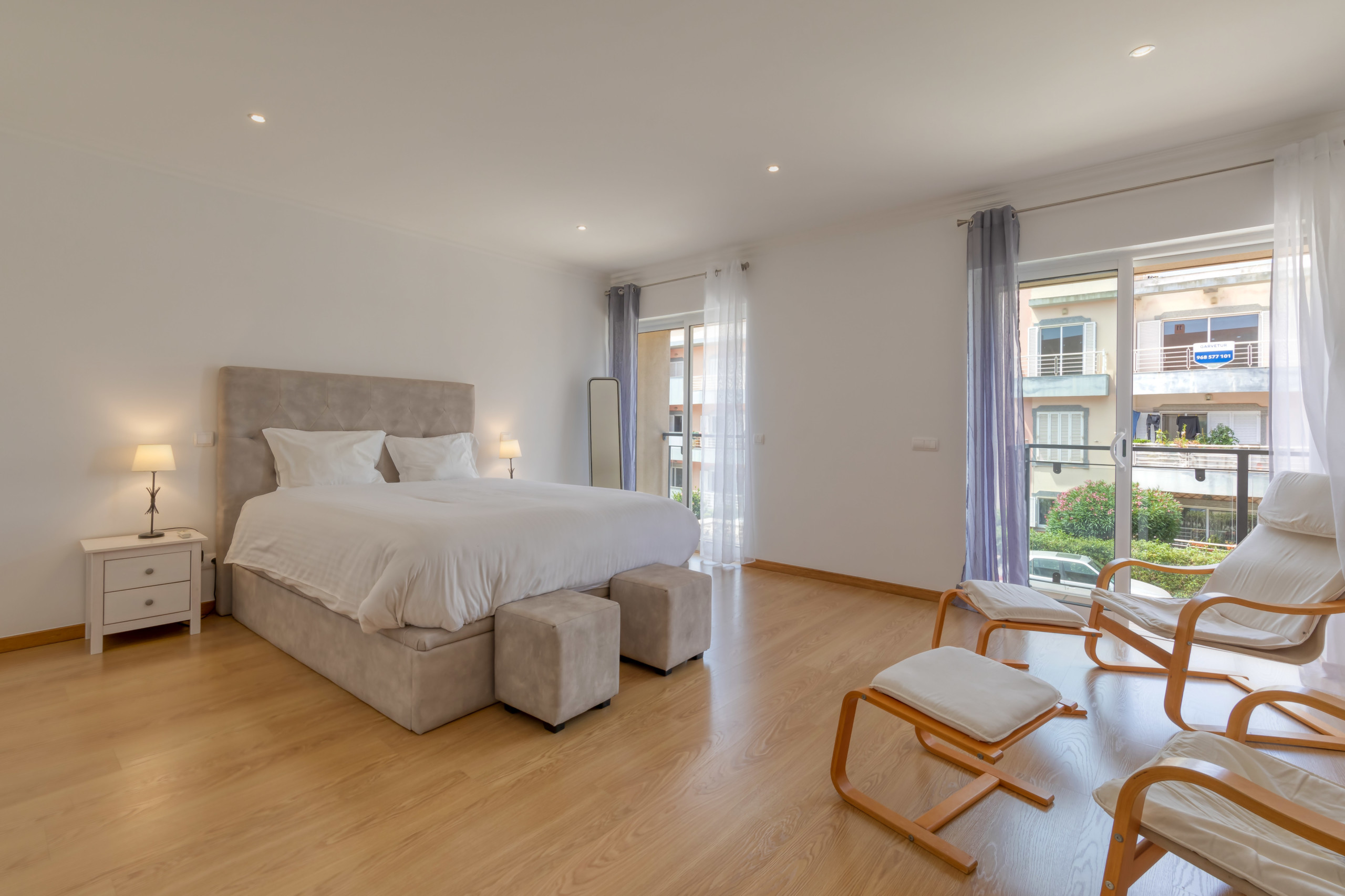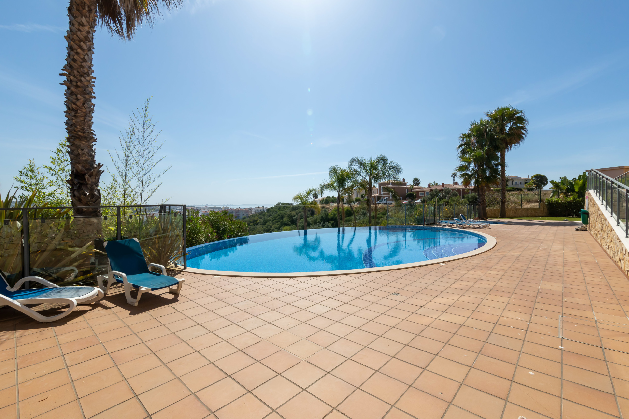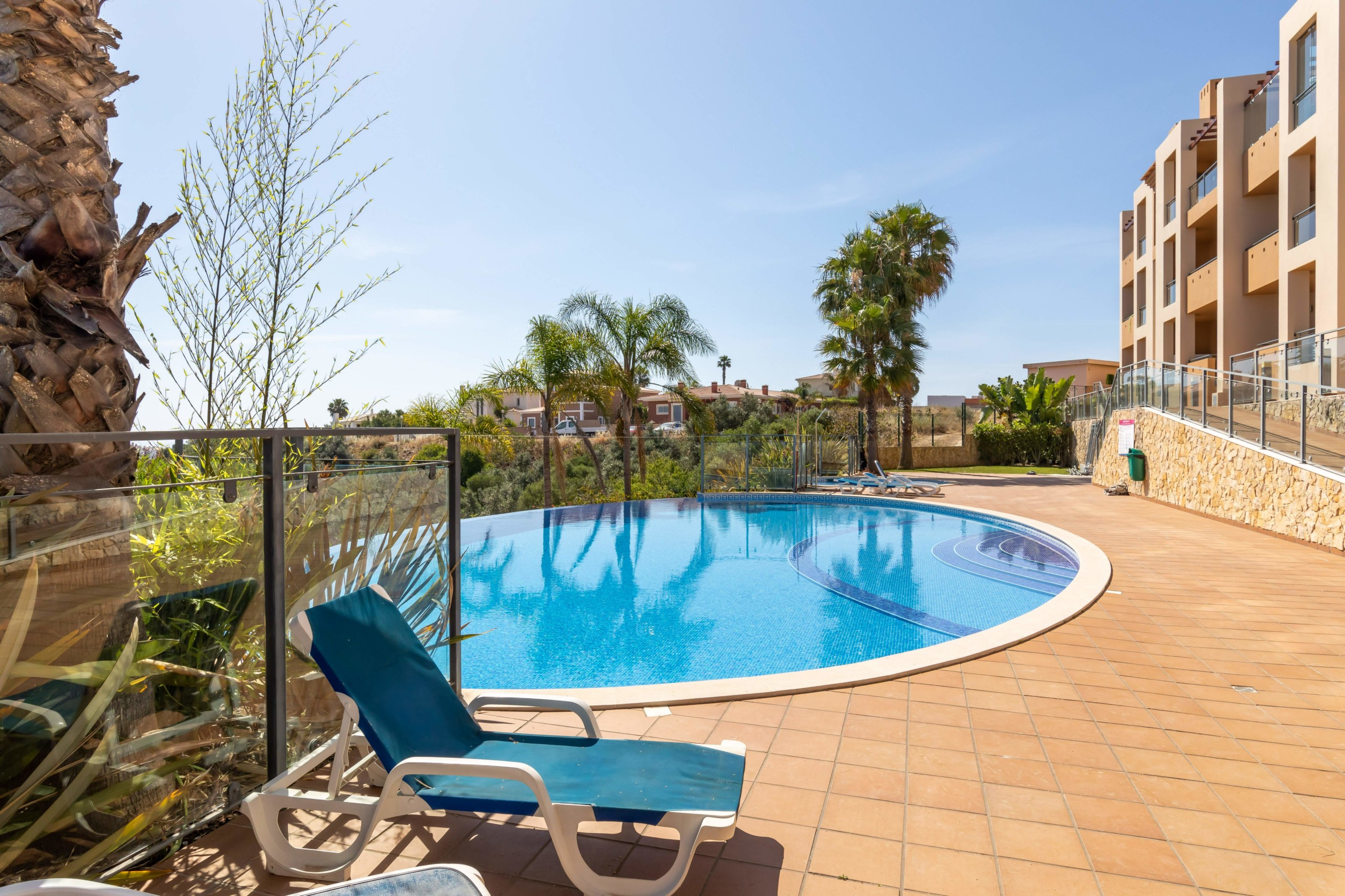 Fully furnished apartment, with 3 bedrooms and 2 bathrooms (one ensuite). A balcony in the front and one in the back with a barbecue and a fantastic view overlooking the pool.