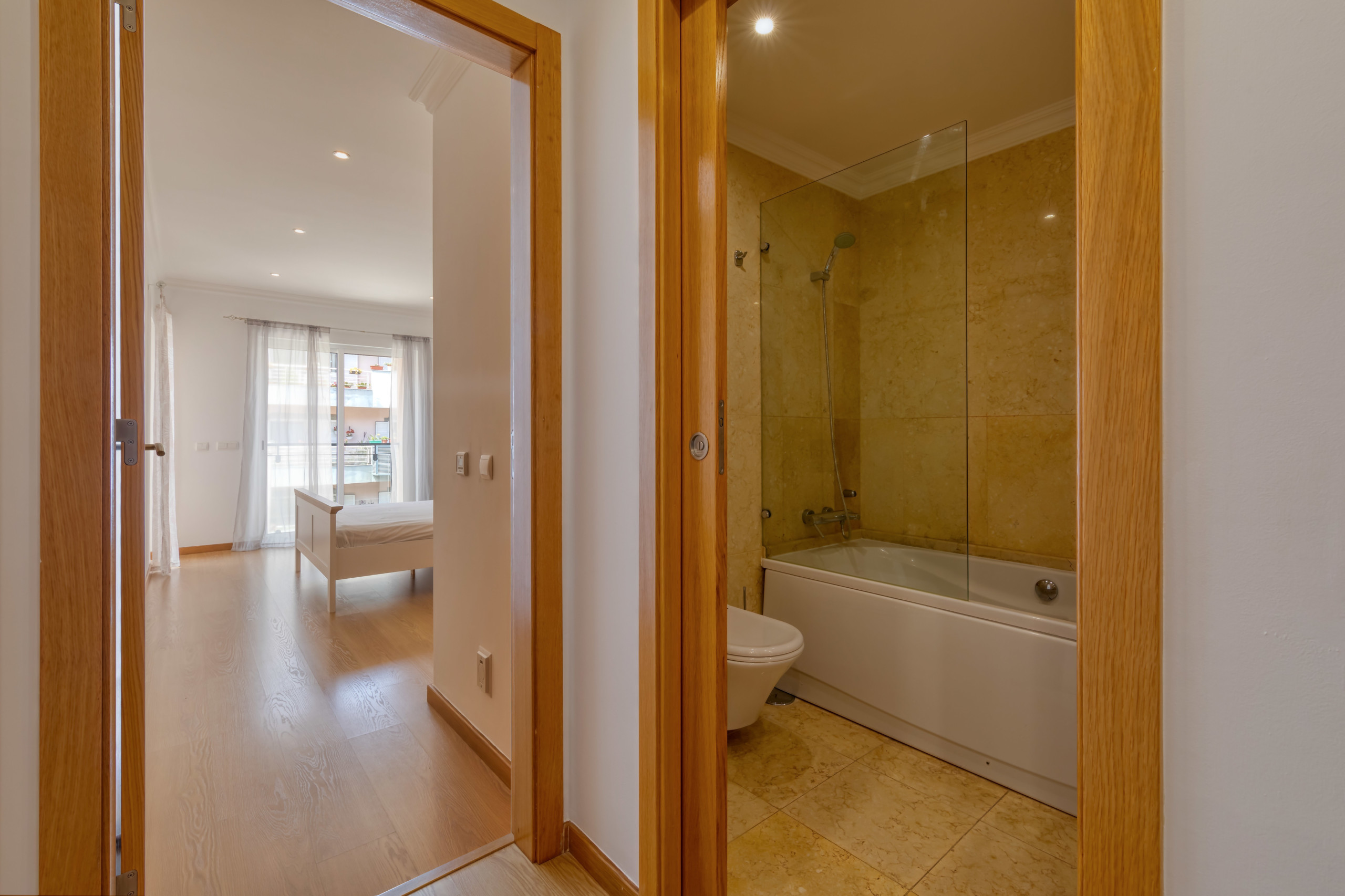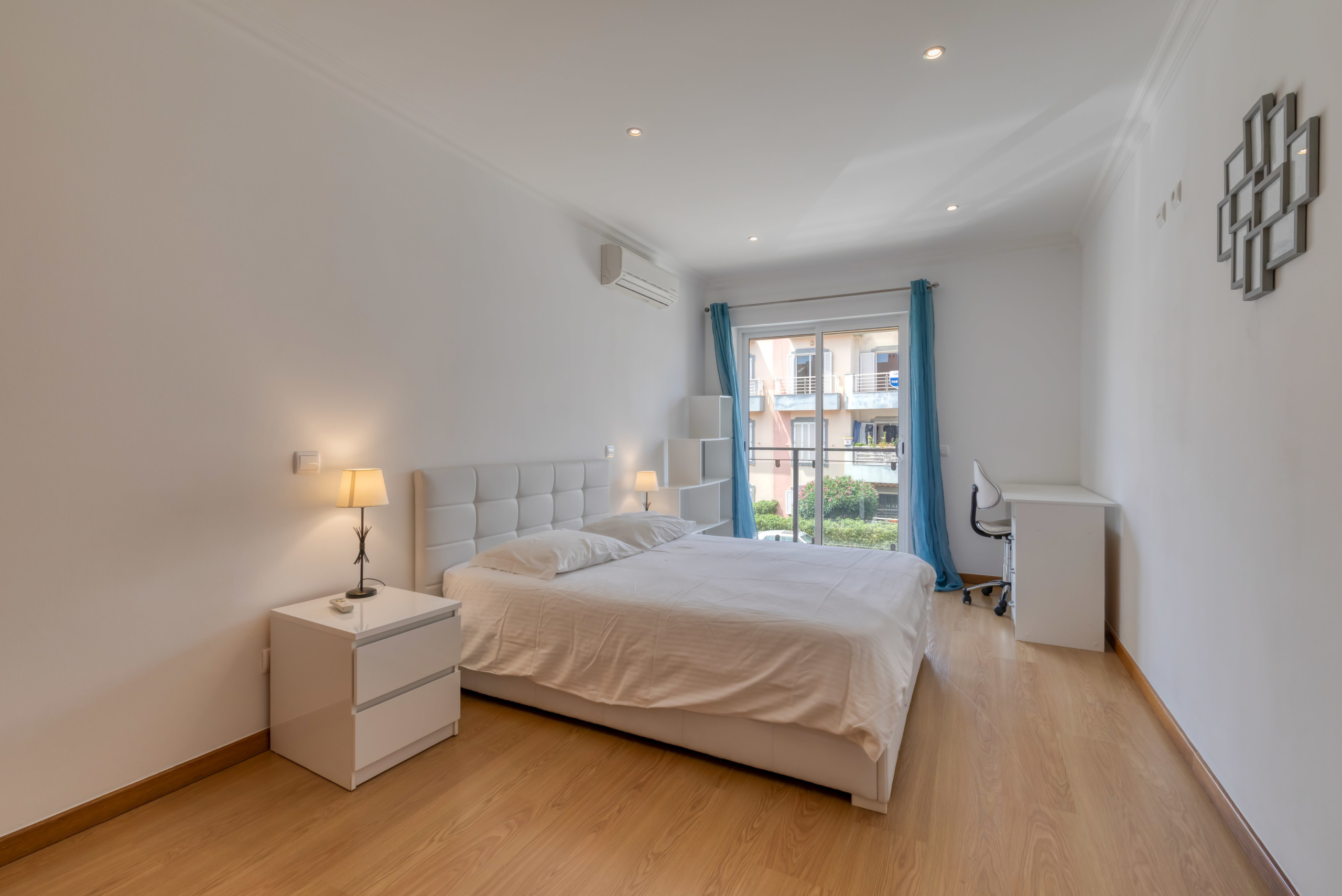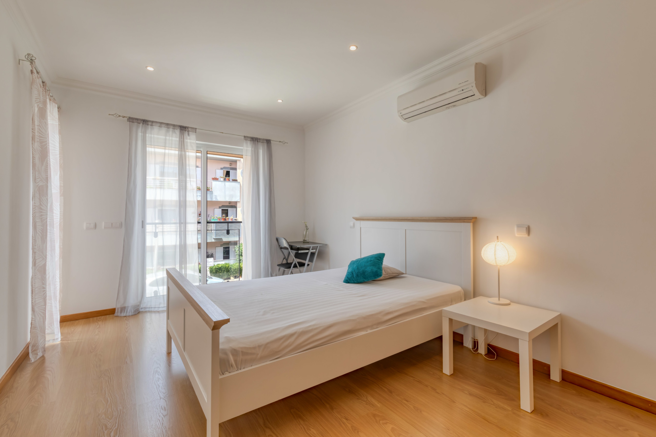 Fully furnished apartment, with 3 bedrooms and 2 bathrooms (one ensuite). A balcony in the front and one in the back with a barbecue and a fantastic view overlooking the pool.