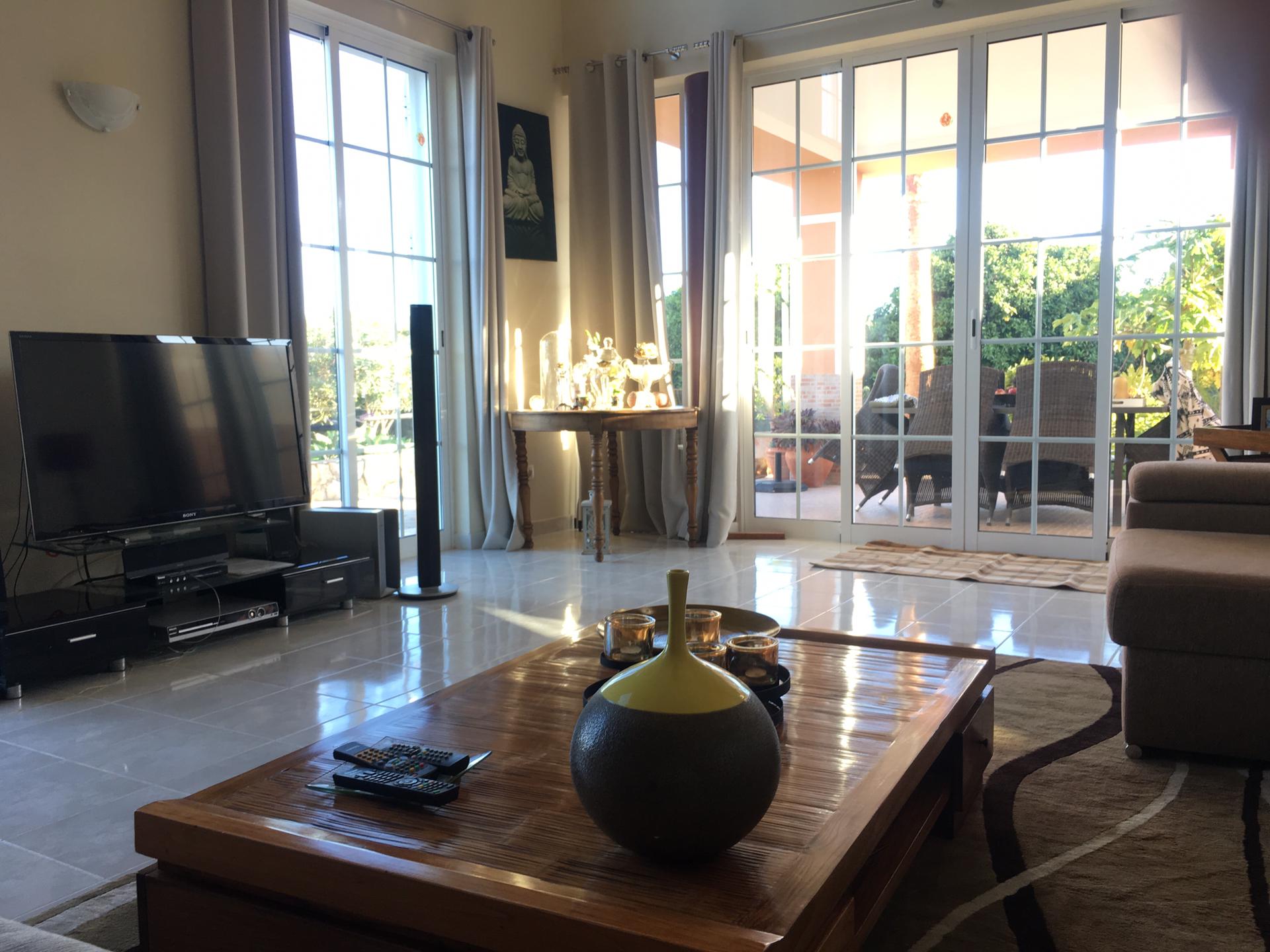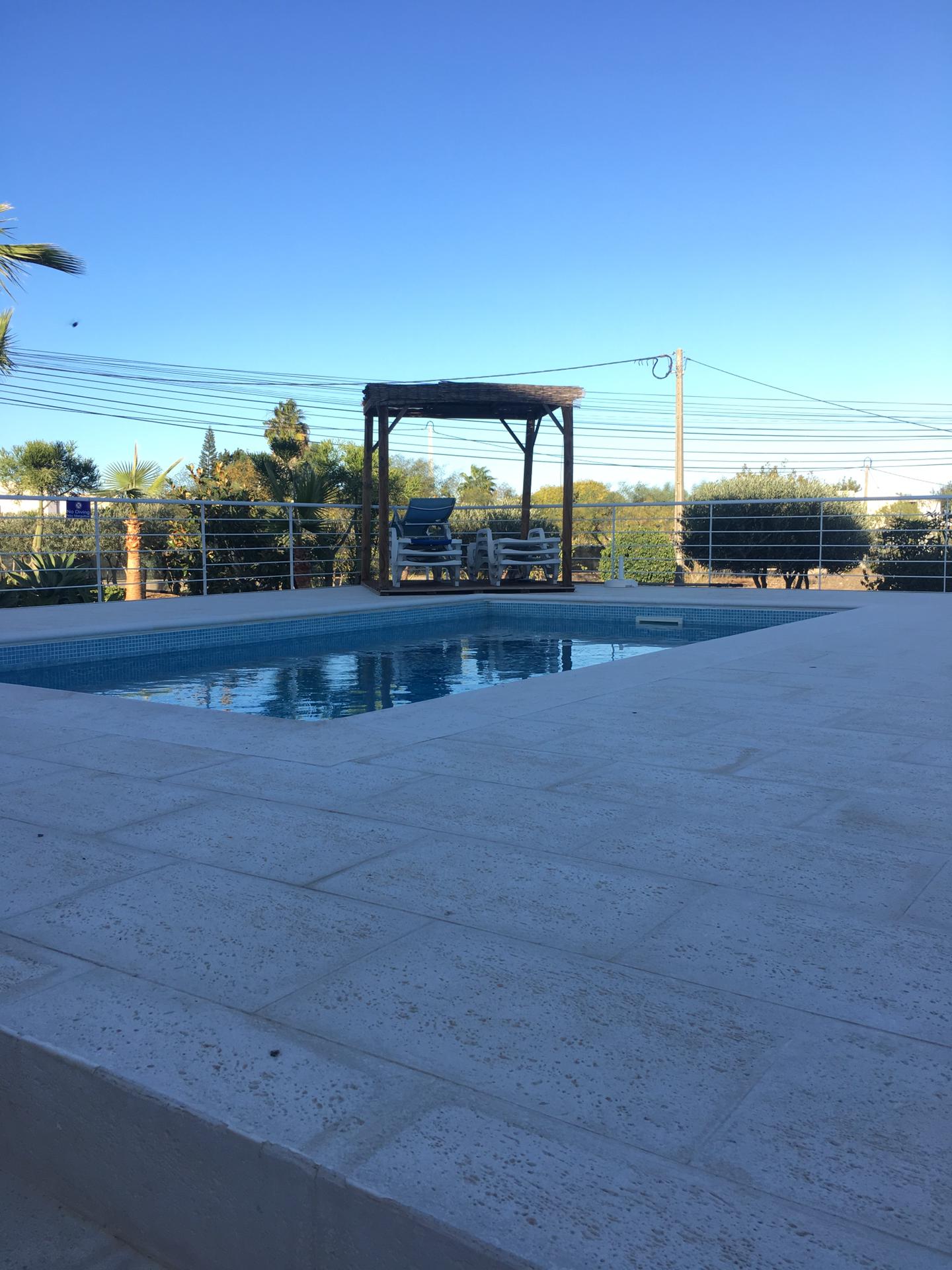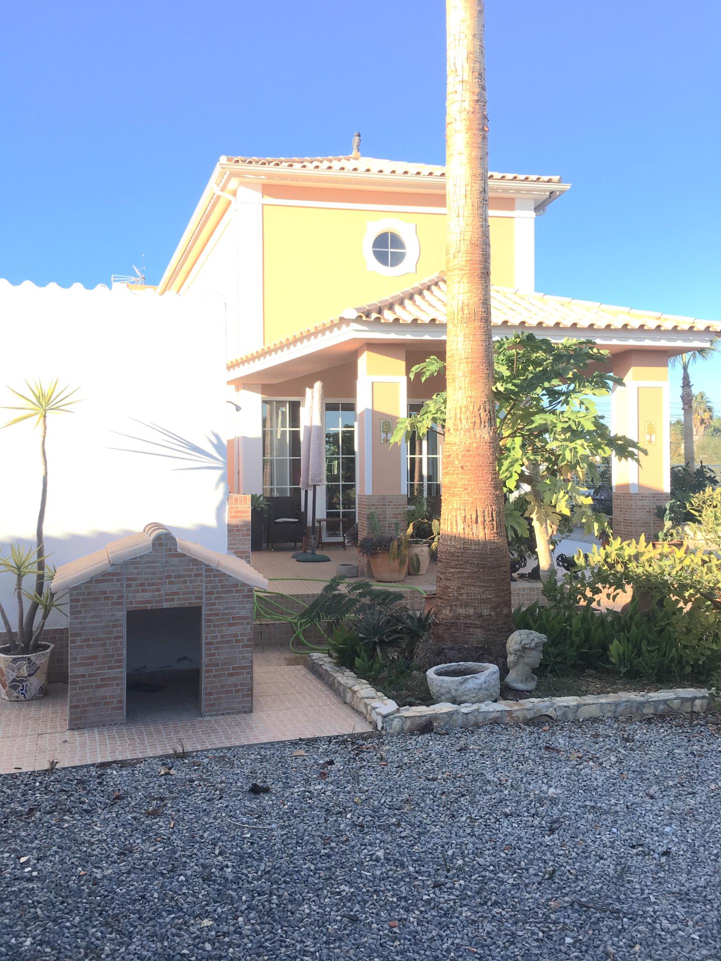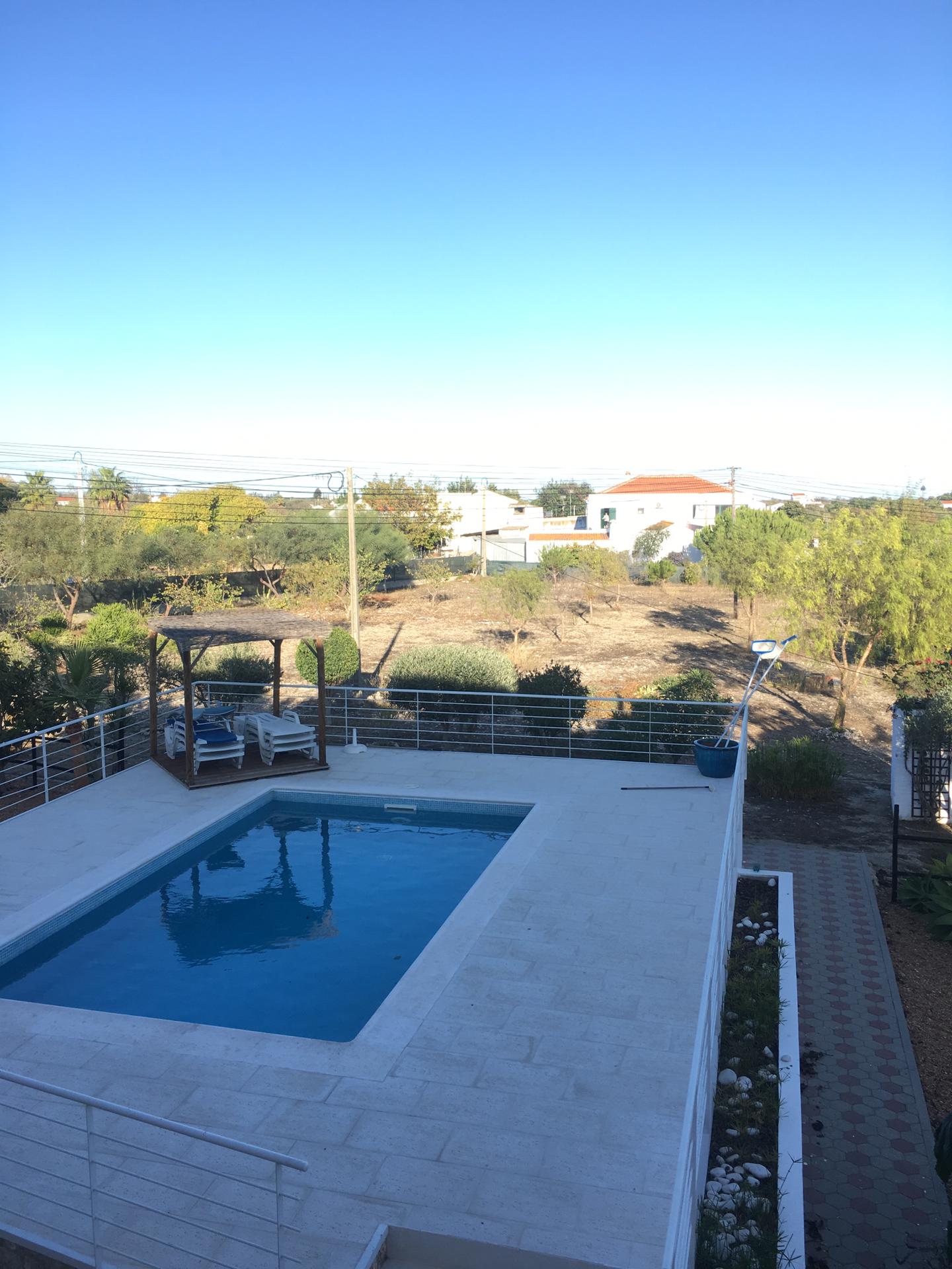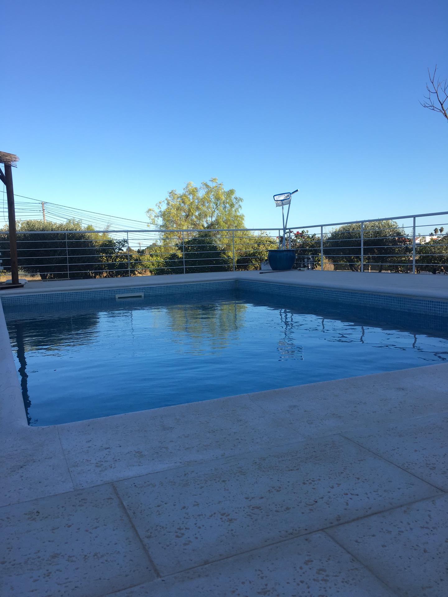 Spacious 3 Bedroom Villa in Luz de Tavira is located in a small village. It has 3 bedrooms and 3 bathrooms, one of them being en suite plus a fully fitted and equipped kitchen, air conditioning in all the rooms and a fireplace. It has access to a private pool and also a large garden with fruit trees and private covered parking. Several balconies located around the house including off of the living room.