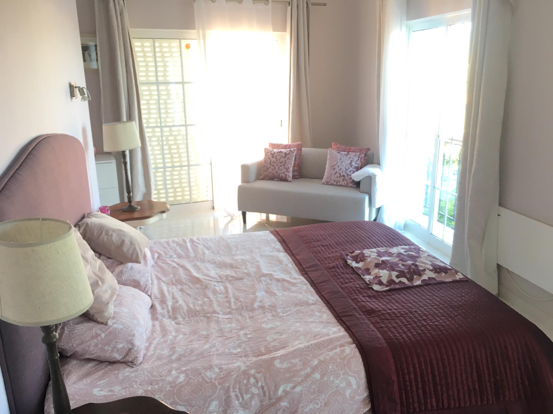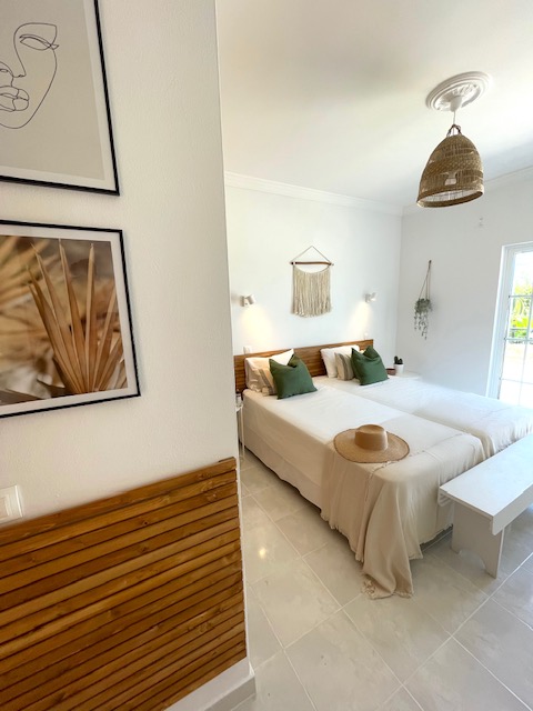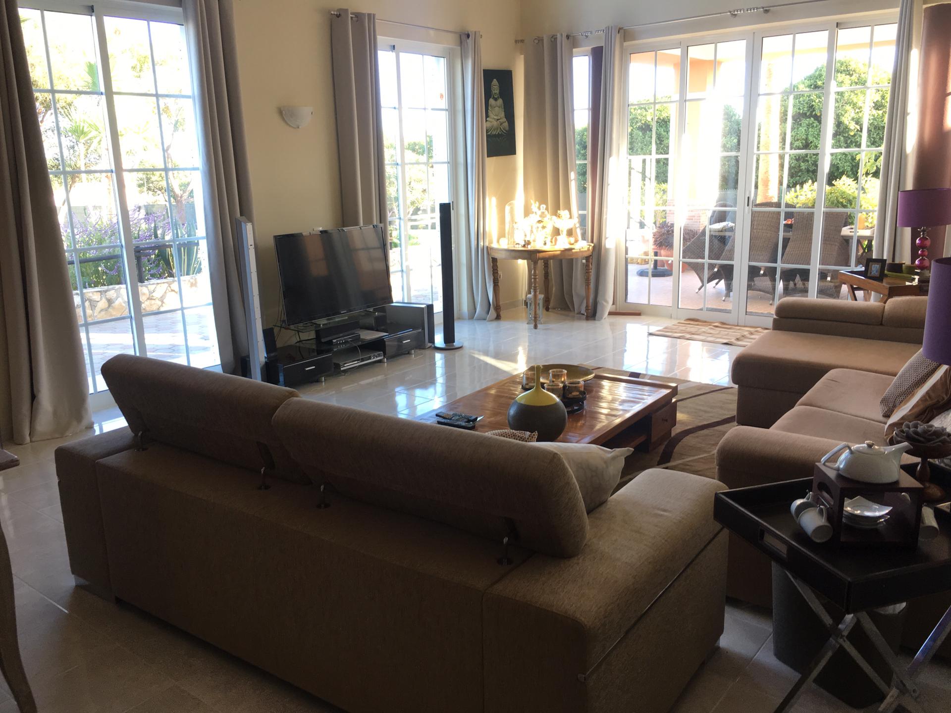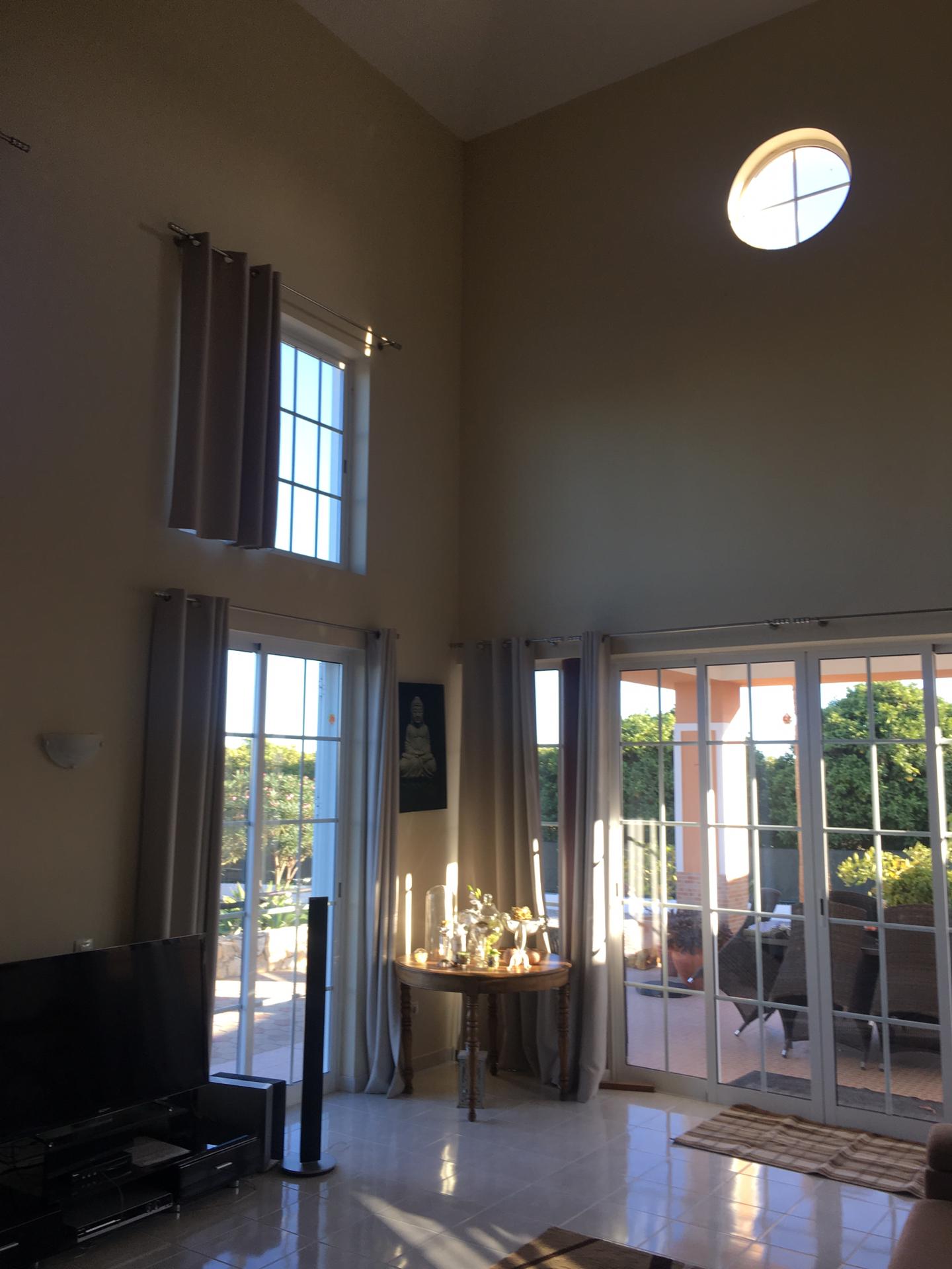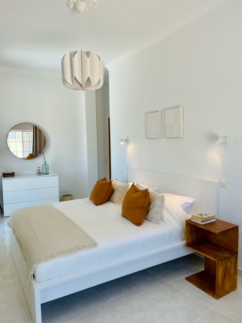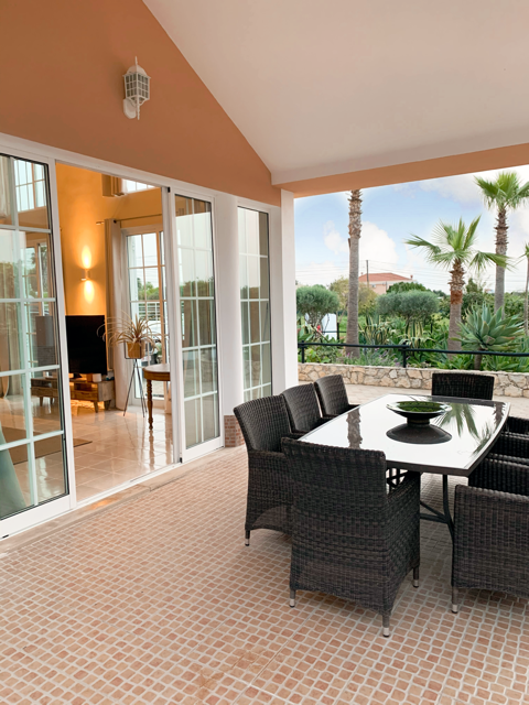 Spacious 3 Bedroom Villa in Luz de Tavira is located in a small village. It has 3 bedrooms and 3 bathrooms, one of them being en suite plus a fully fitted and equipped kitchen, air conditioning in all the rooms and a fireplace. It has access to a private pool and also a large garden with fruit trees and private covered parking. Several balconies located around the house including off of the living room.