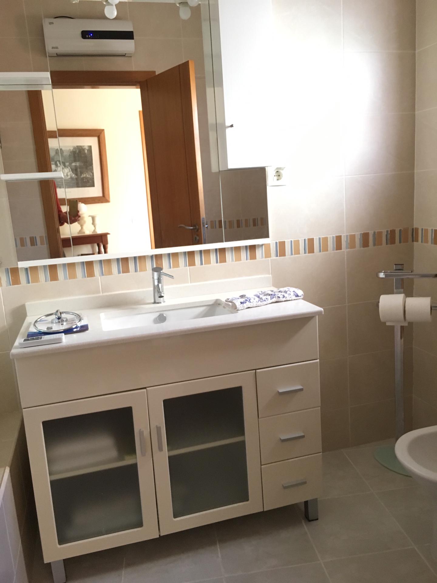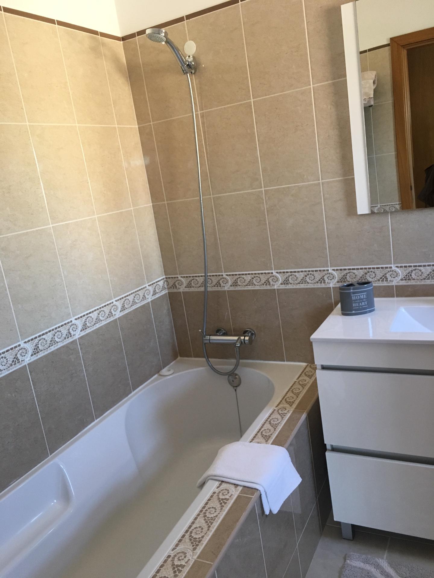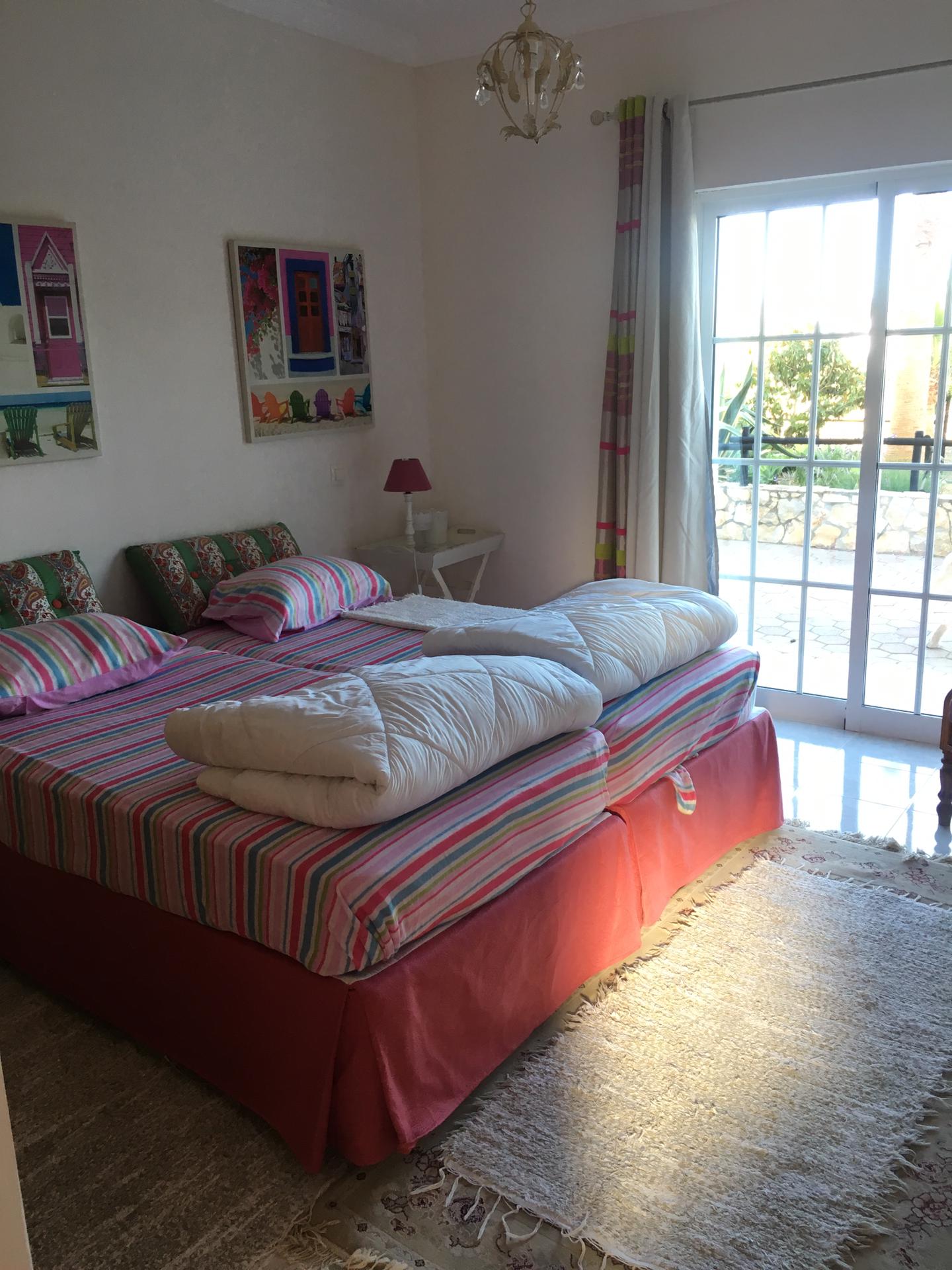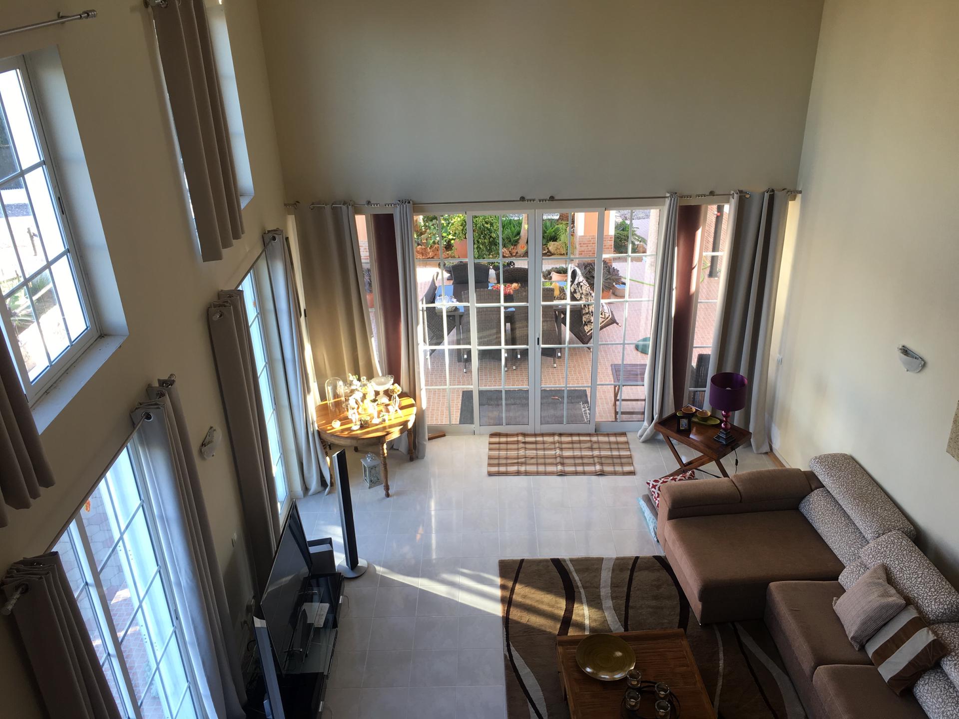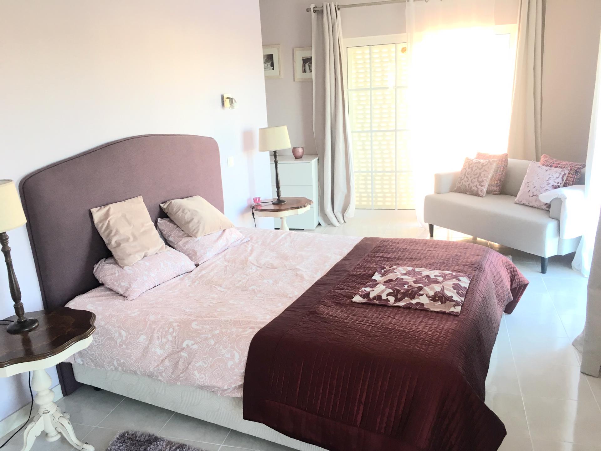 Spacious 3 Bedroom Villa in Luz de Tavira is located in a small village. It has 3 bedrooms and 3 bathrooms, one of them being en suite plus a fully fitted and equipped kitchen, air conditioning in all the rooms and a fireplace. It has access to a private pool and also a large garden with fruit trees and private covered parking. Several balconies located around the house including off of the living room.