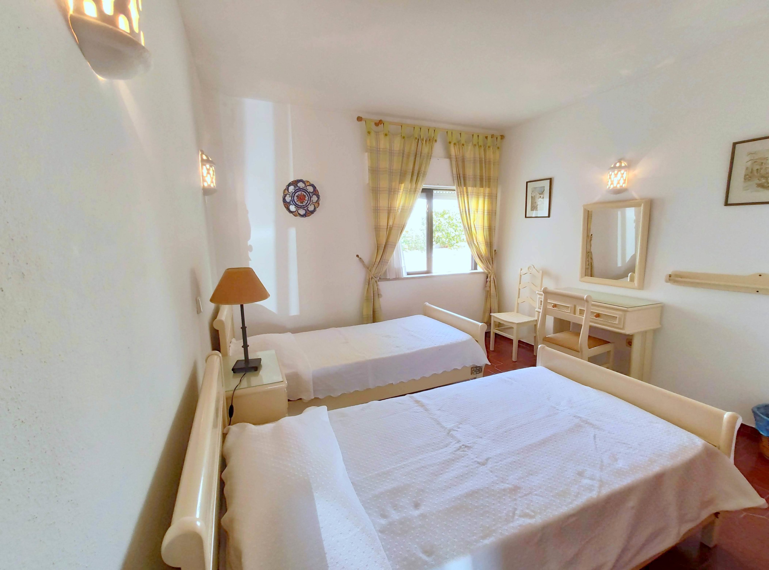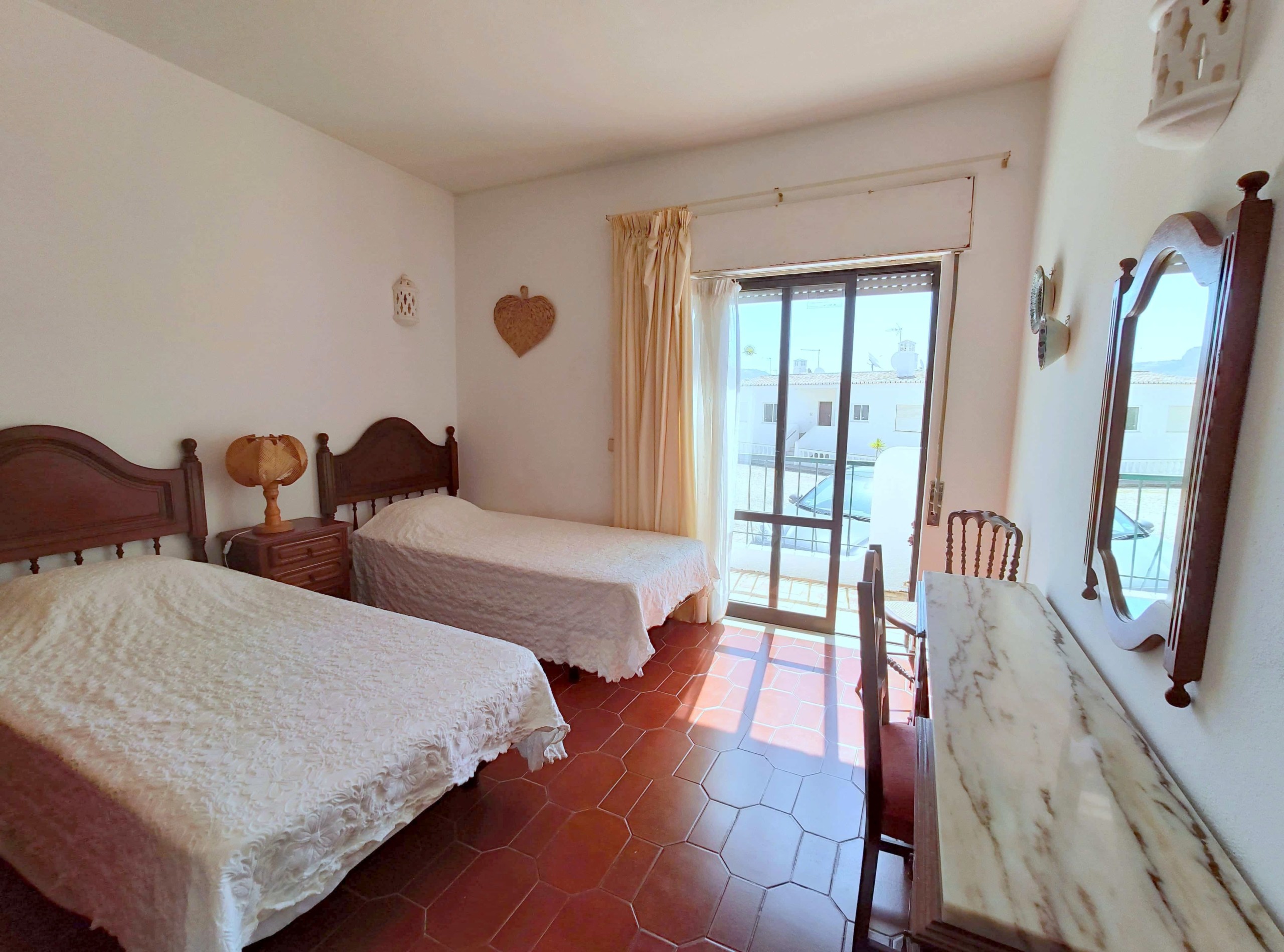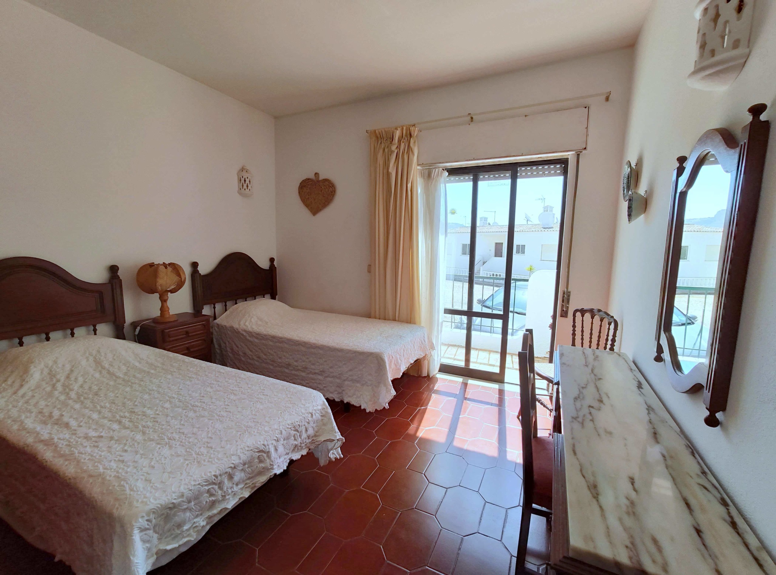 This traditional 2-bedroom apartment in Luz is part a small Apartment complex. Extremely well located right in the heart of the village, this traditional 2-bedroom apartment is extremely close to the beach, a 1 or 2 minute walk away as well as very close to the supermarkets, pharmacy, bars and restaurants. Entering on the right hand up some stairs of block 1, after you come in, on your right you will have the kitchen, it has all modern appliances including washing machine and oven. Next to the kitchen you have the living room, with Portuguese cable TV and free wifi, exiting the living room a terrace with a great view to the sea. Going downstairs you will find the two double bed bedrooms as well as a bathroom with a bathtub.