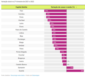 In an article, also in July 2022, published by the idealista portal, it is reported that there has been a 25% decrease in available inventory over the preceding 12 months. This problem is most acute in the Algarve problems, where supply has diminished 37% year on year.